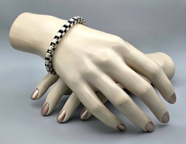 Deze zilveren armband met blackplaat schakel is gemaakt van 925 zilver. De mooie veerring sluiting is gemaakt van 925 zilver. Een tijdloze armband die zowel solo, als gecombineerd met andere armbanden gedragen kan worden.
