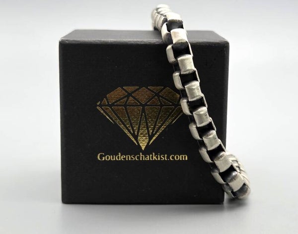 Zilveren blackplaat schakel armband nieuw. 2025/433.
