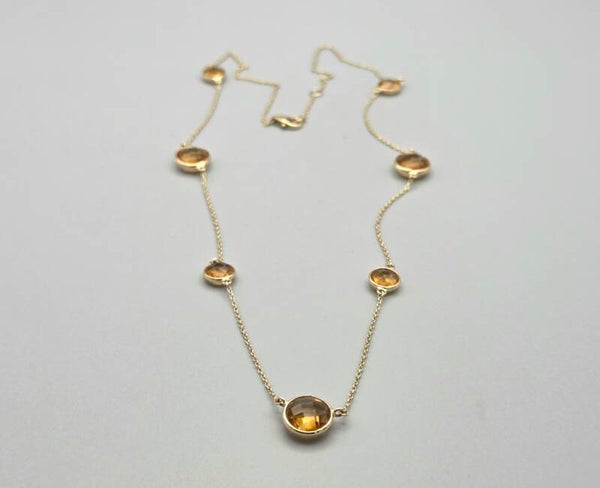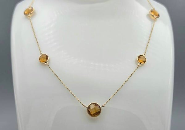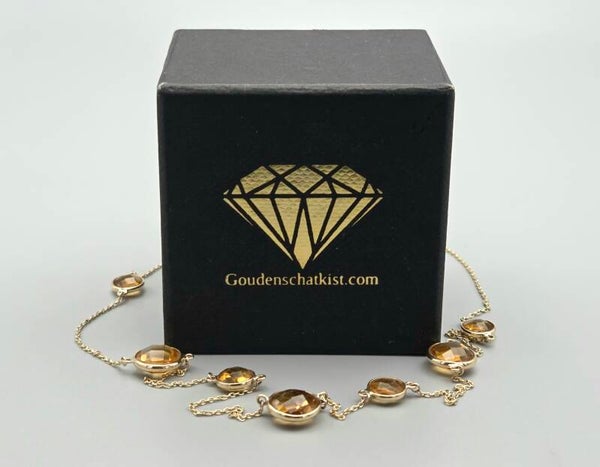 Deze prachtig mooie vintage dames ketting is gemaakt van 9 karaat en is gezet met edelstenen citrien.