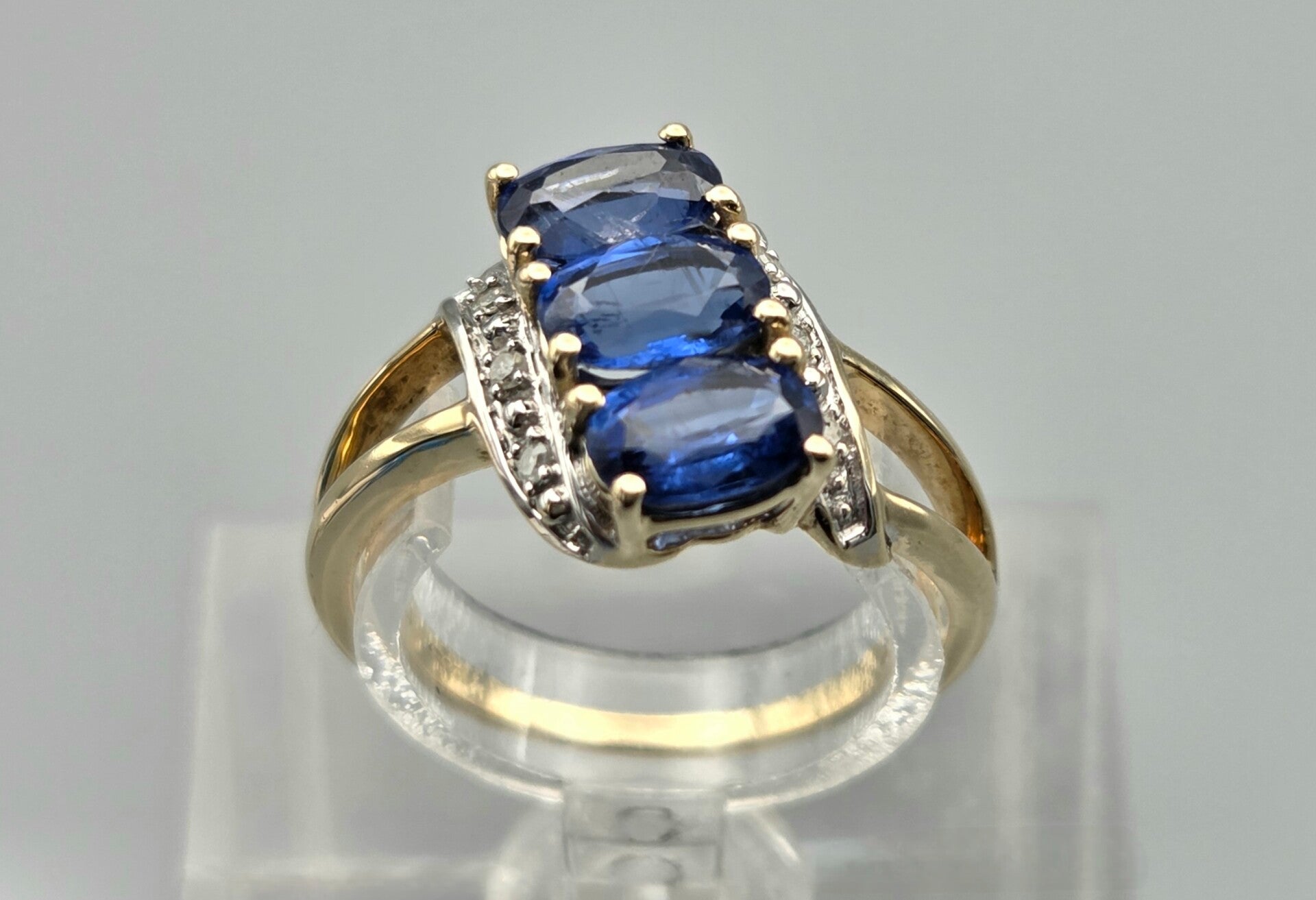 Vintage ring met edelsteen saffier en diamant. 2025/474.