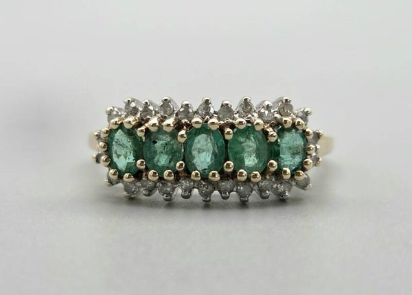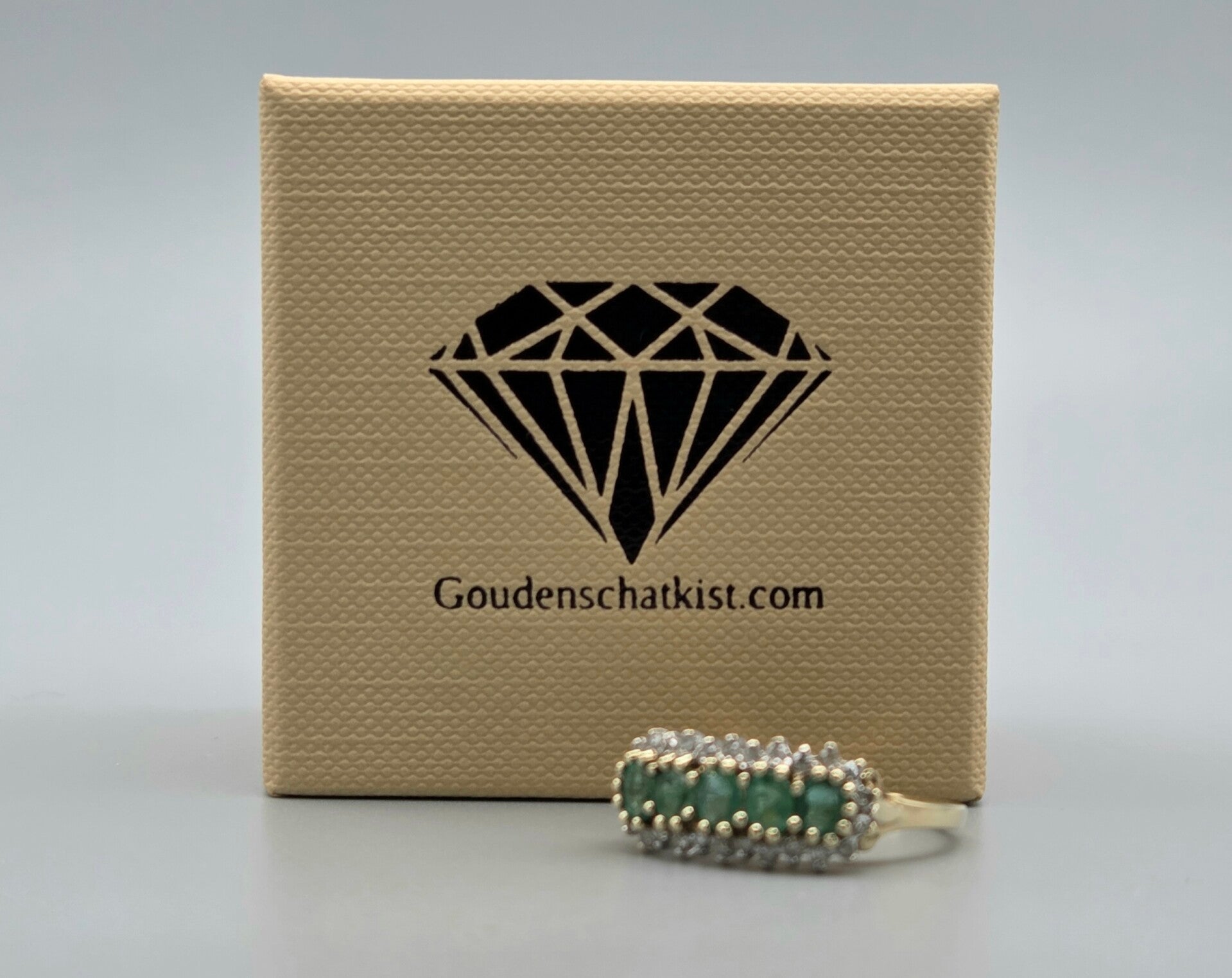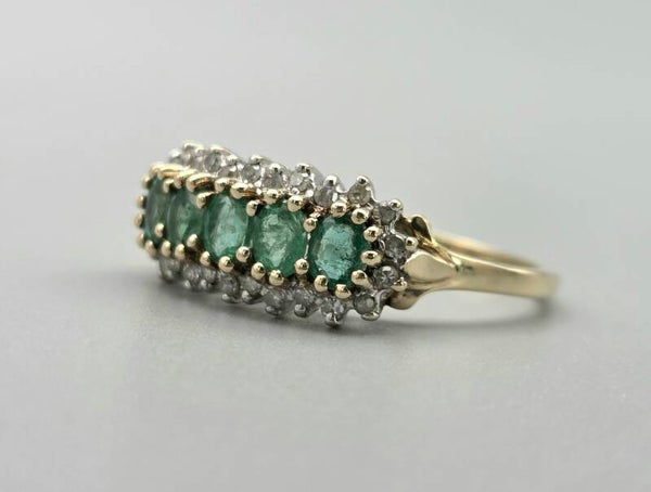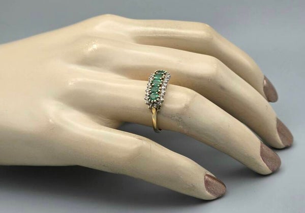 Droom weg met deze prachtige vintage ring! De schoonheid van deze ring is moeilijk onder woorden te brengen. Hij is gemaakt van 9 karaat en is gezet met diamanten en een edelsteen smaragd.