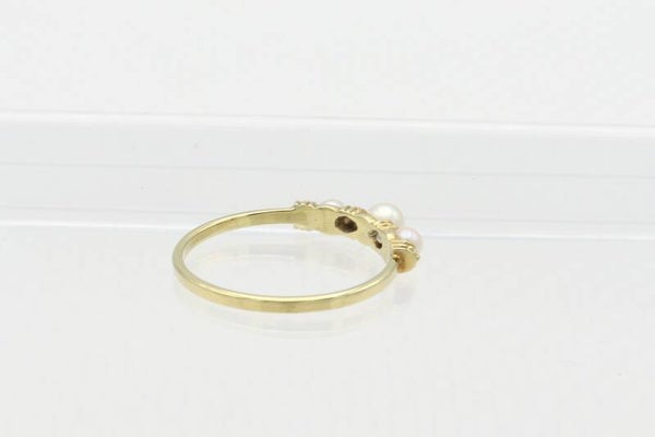 14 Karaat. Gouden vintage ring met parel en diamant. Maat:17.1. Nr: 2020/597.