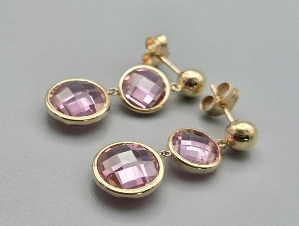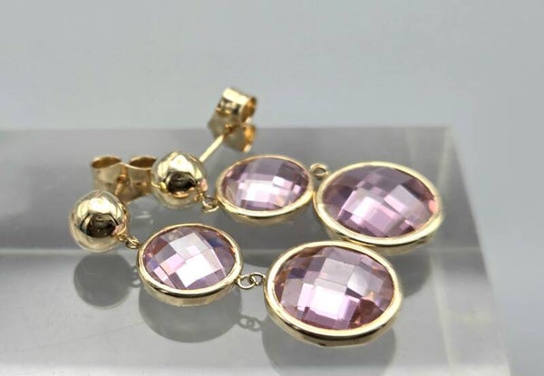 Vintage oorbellen met edelsteen roze toermalijn. 2025/489.