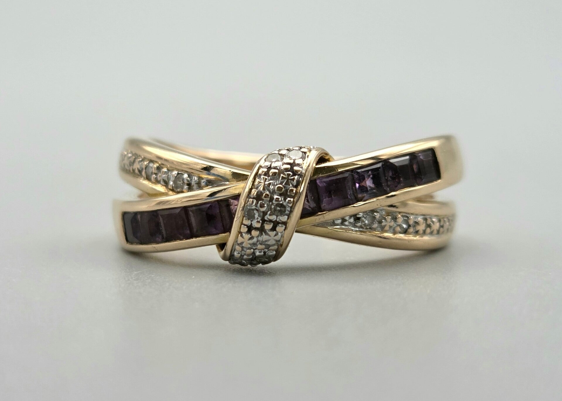Vintage ring met edelstenen amethist en diamant. 2025/493.