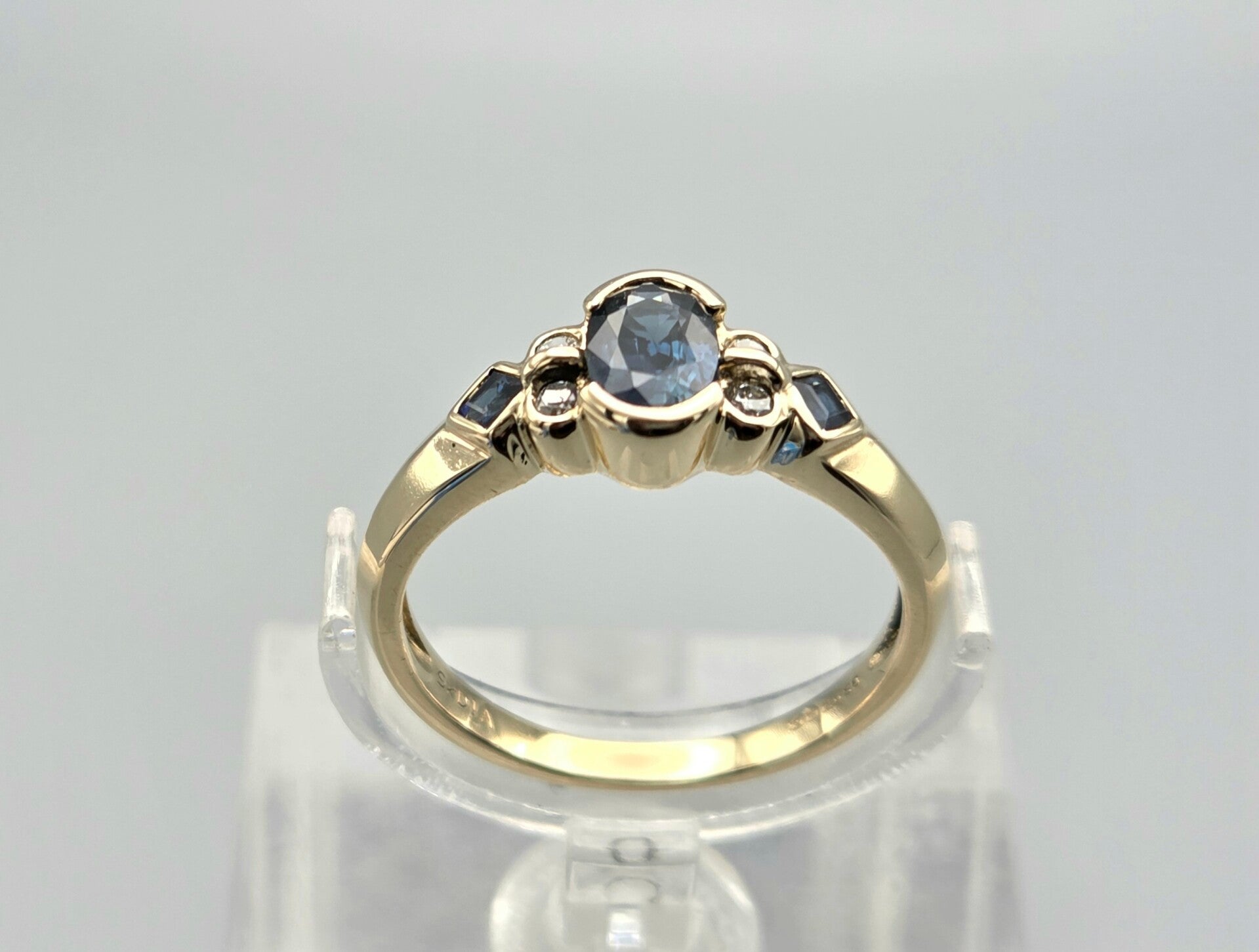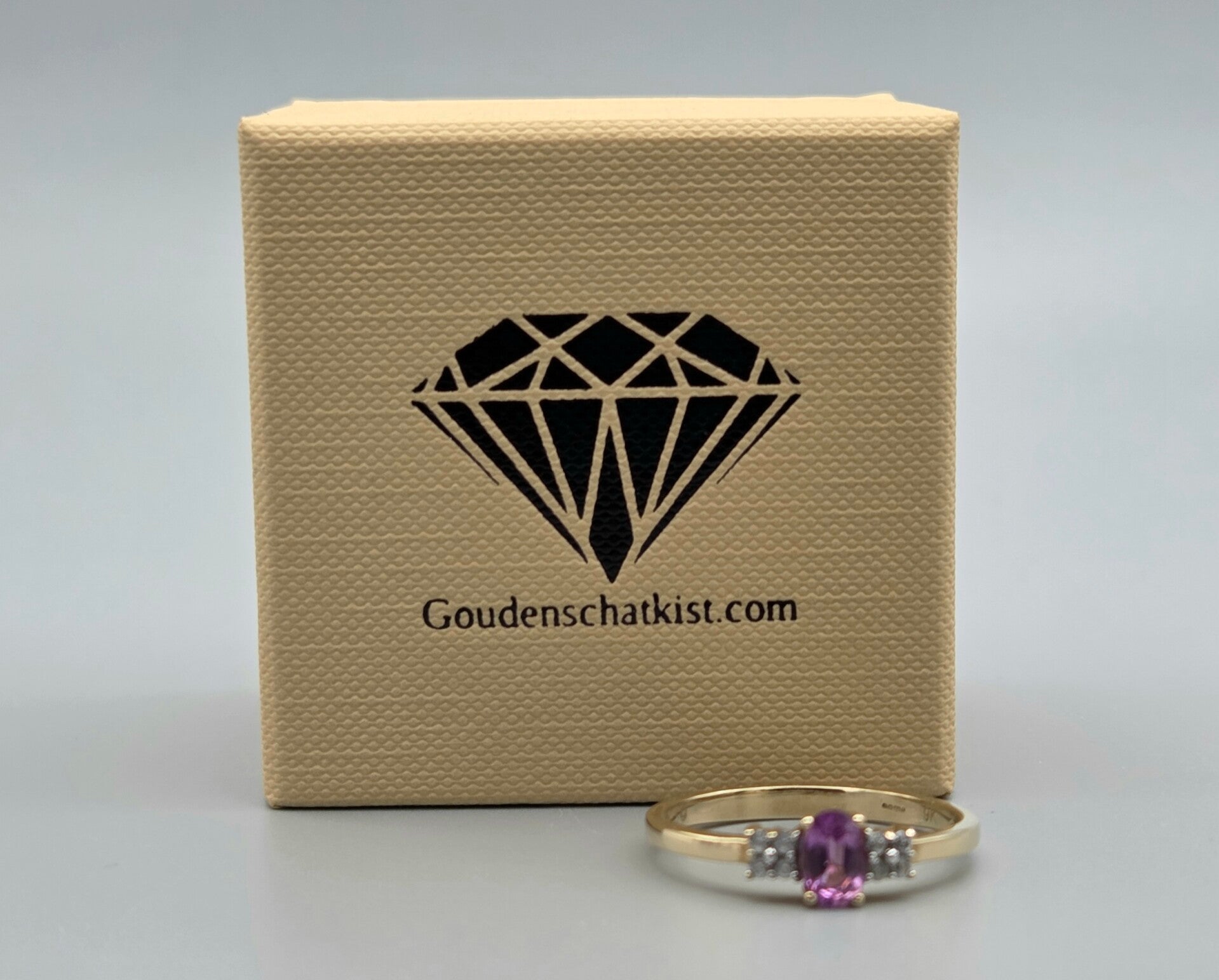 Vintage ring met edelsteen saffier en diamant. 2025/514