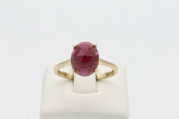 Gouden vintage ring met granaat. Maat: 17. 2020/603.