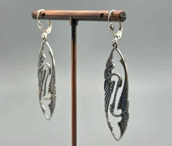 Zilveren dubbelle kraanvogel oorbellen. 2025/528.