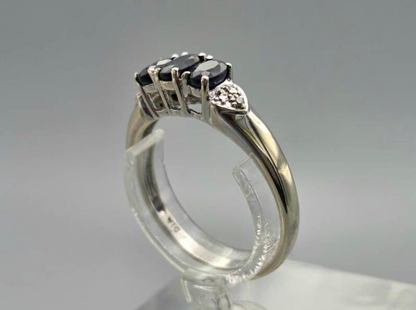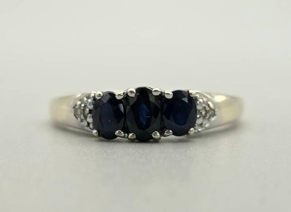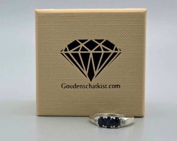 Vintage ring met edelsteen saffier en diamant. 2025/534.