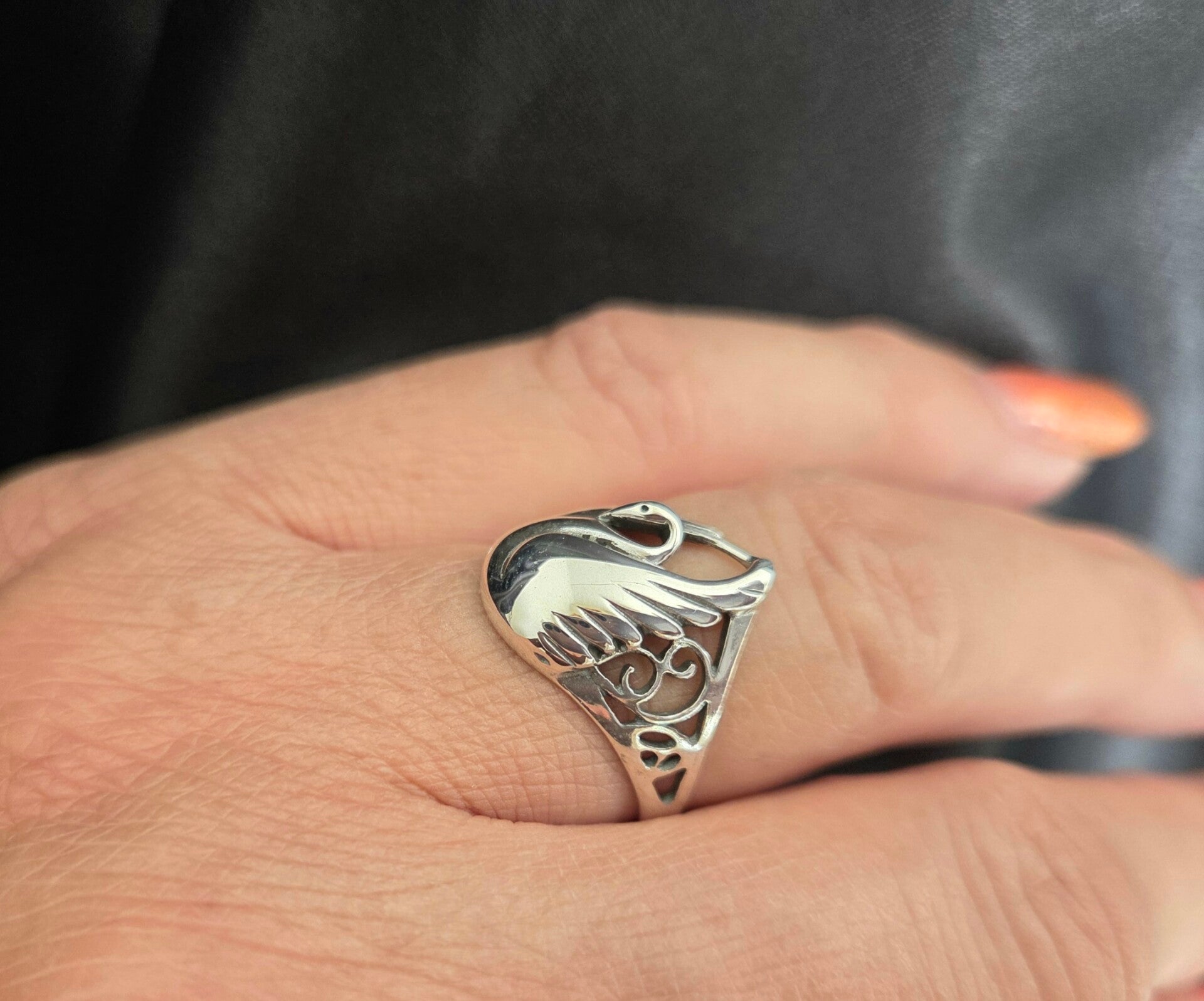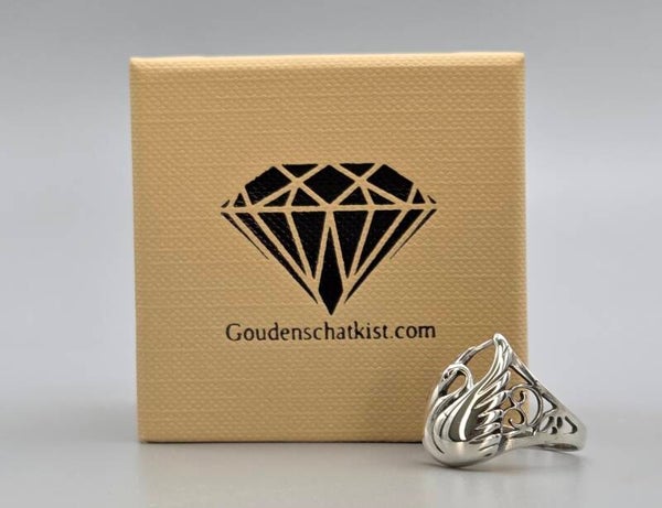 Deze ring is een waar meesterwerk! De zilveren Art Nouveau ring is gemaakt van 925 zilver. De ring is verfraaid met een zwaan.