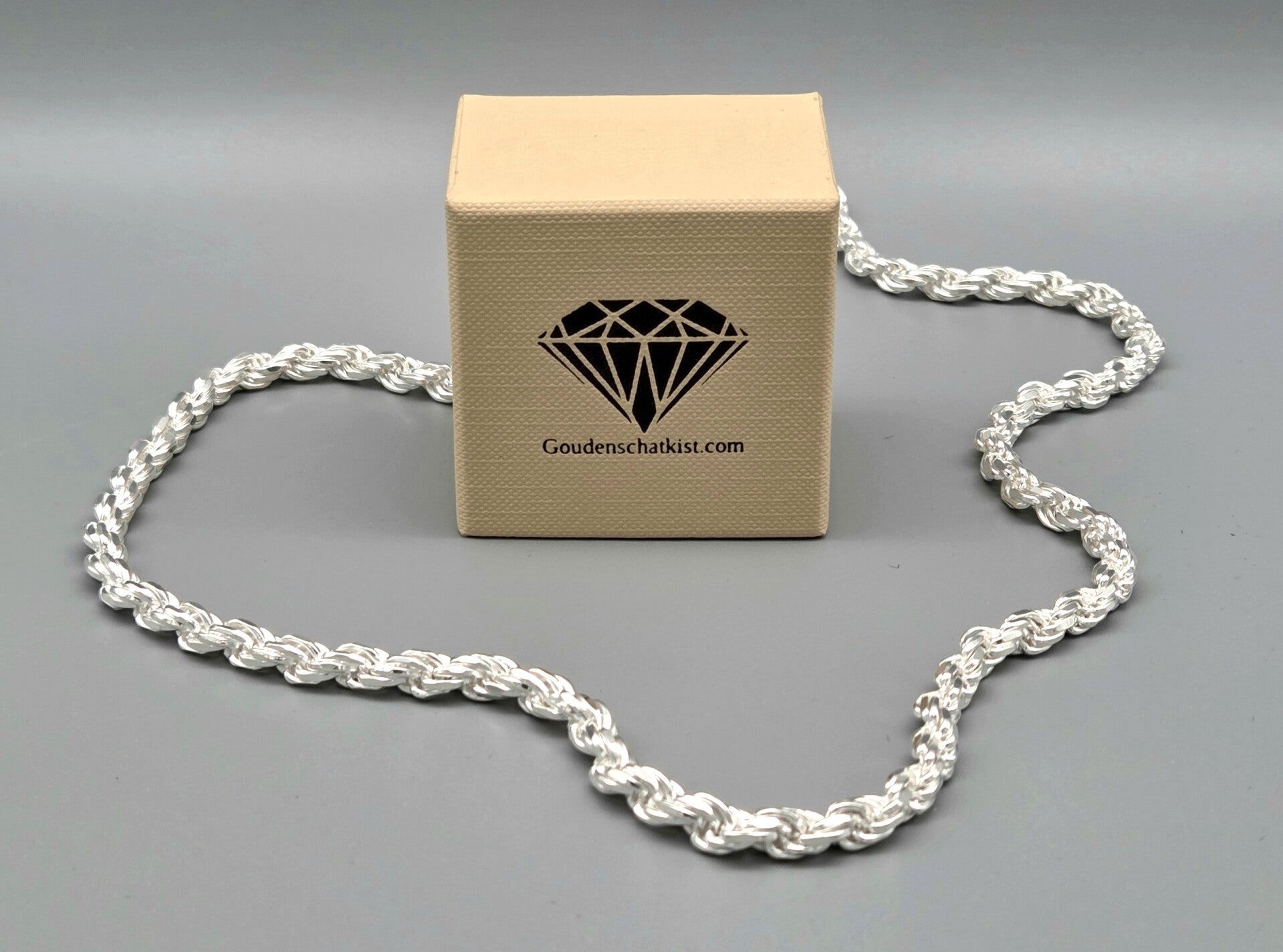Wat een prachtige rope ketting! De schakels zijn prachtig gevormd en de ketting sluit door middel van een lobsterslot. De koord ketting is gemaakt van 925 zilver.