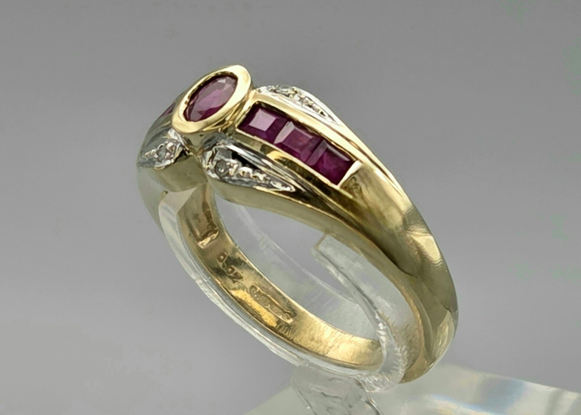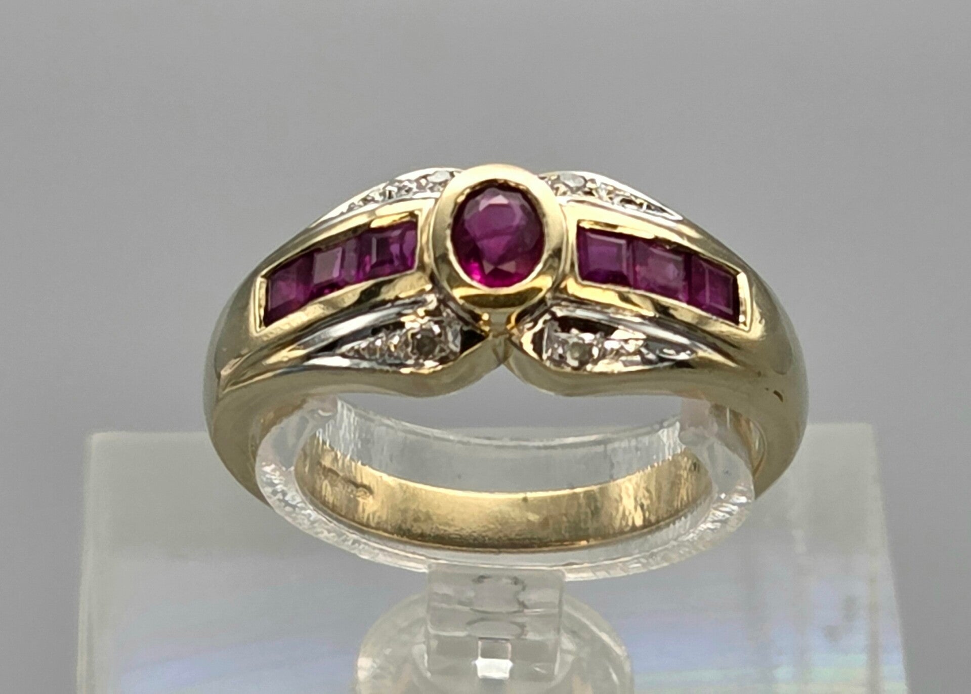 Vintage ring met edelsteen robijn en diamant. 2025/628.