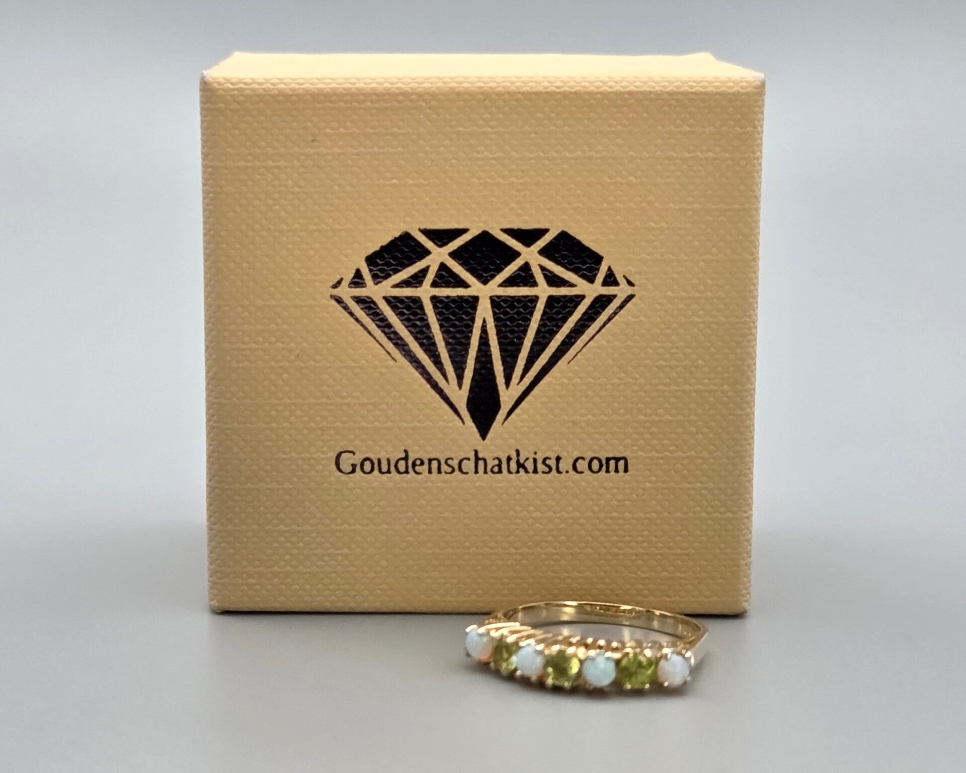 Vintage ring met edelsteen opaal en peridot. 2025/631.