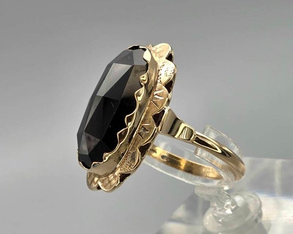 De donker rode kleur van deze gouden ring past overal bij. Juist dat is zo leuk aan sieraden met granaat. Deze gouden ring is gemaakt van 14 karaat goud en heeft die mooie bewerking die zo kenmerkend is aan antieke ringen.