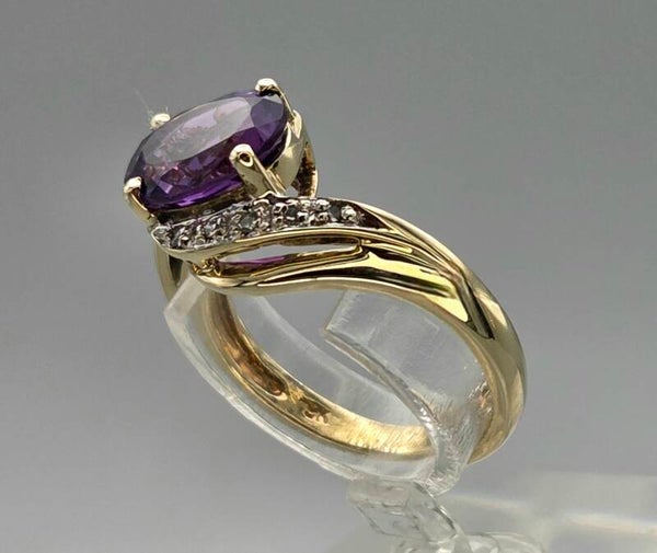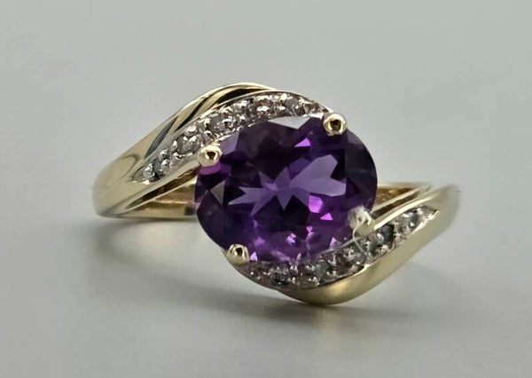 Vintage ring met edelsteen amethist en diamant. 2025/657.