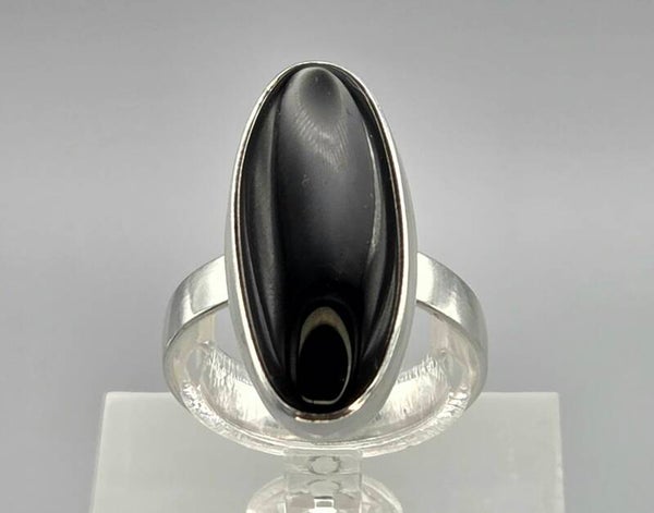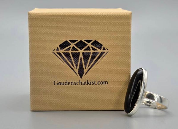 Zilveren ring met edelsteen onyx. 2025/660.
