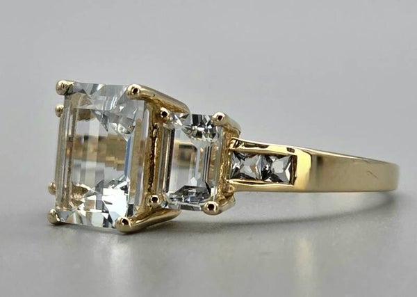 Vintage ring met edelsteen aquamarijn en diamant. 2025/670.