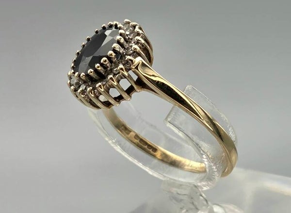 Vintage ring met edelsteen saffier en diamant. 2025/672.