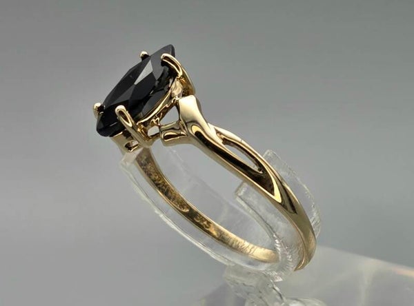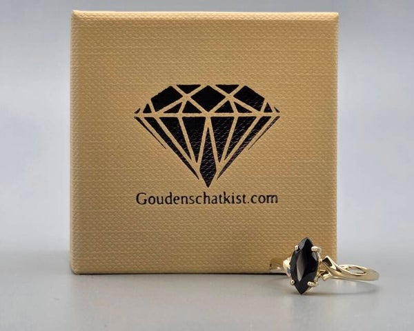 Deze vintage design ring is een echte statement ring. Hij is gemaakt van 9 karaat, met in het middelpunt prachtige mooie edelsteen saffier die alle aandacht trekt.