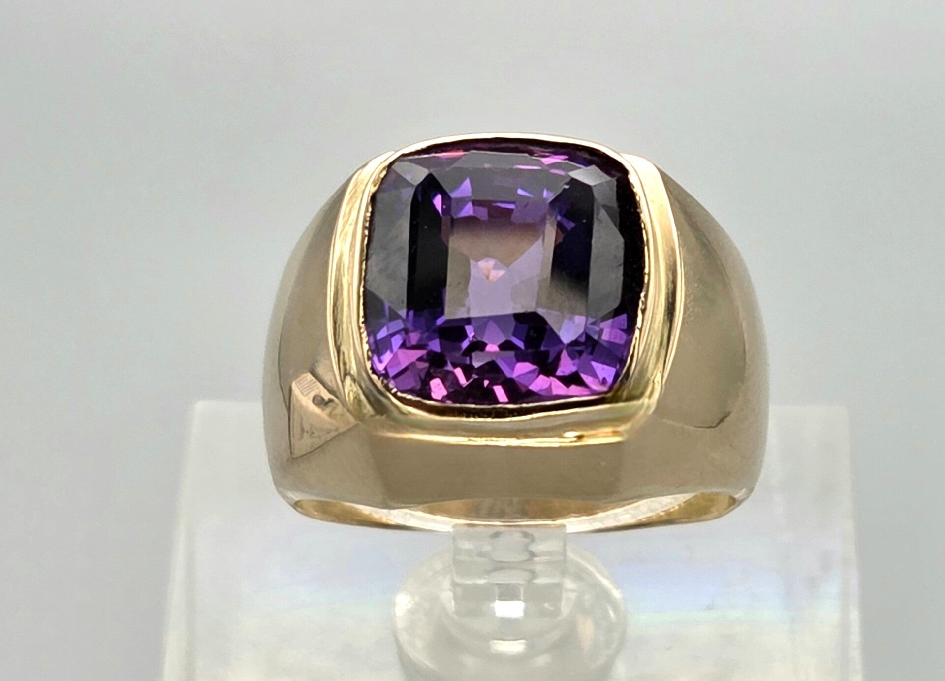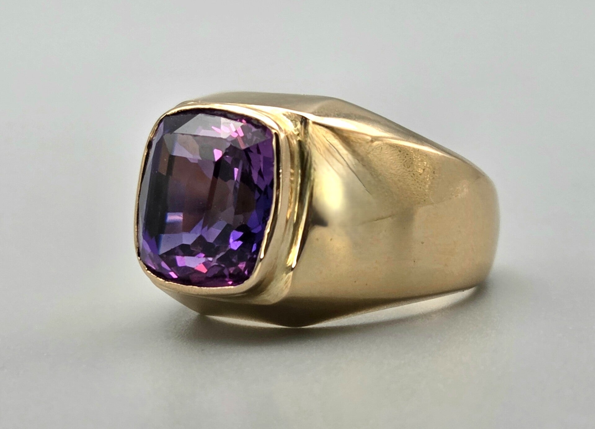 Deze ring heeft door de prachtige paarse kleur van de amethist een hele frisse uitstraling. Daar word je toch blij van?! Dit vintage gouden sieraad is gemaakt van 18 karaat goud. Kan voor heren en dames