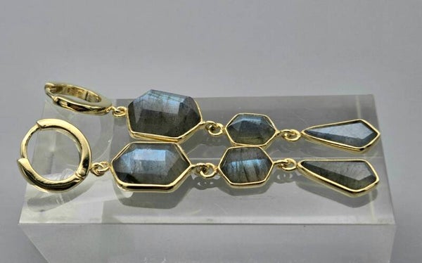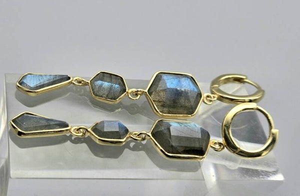 Vermeil op zilver oorbellen met edelstenen labradoriet. 2024/685