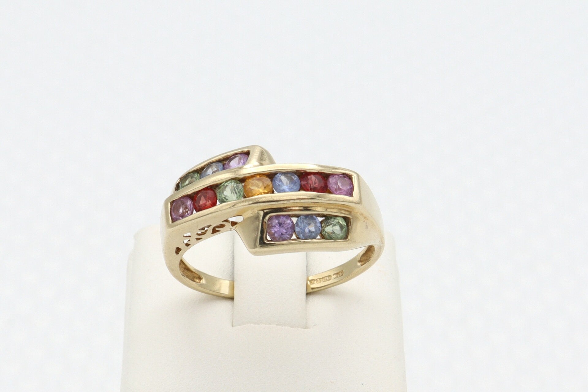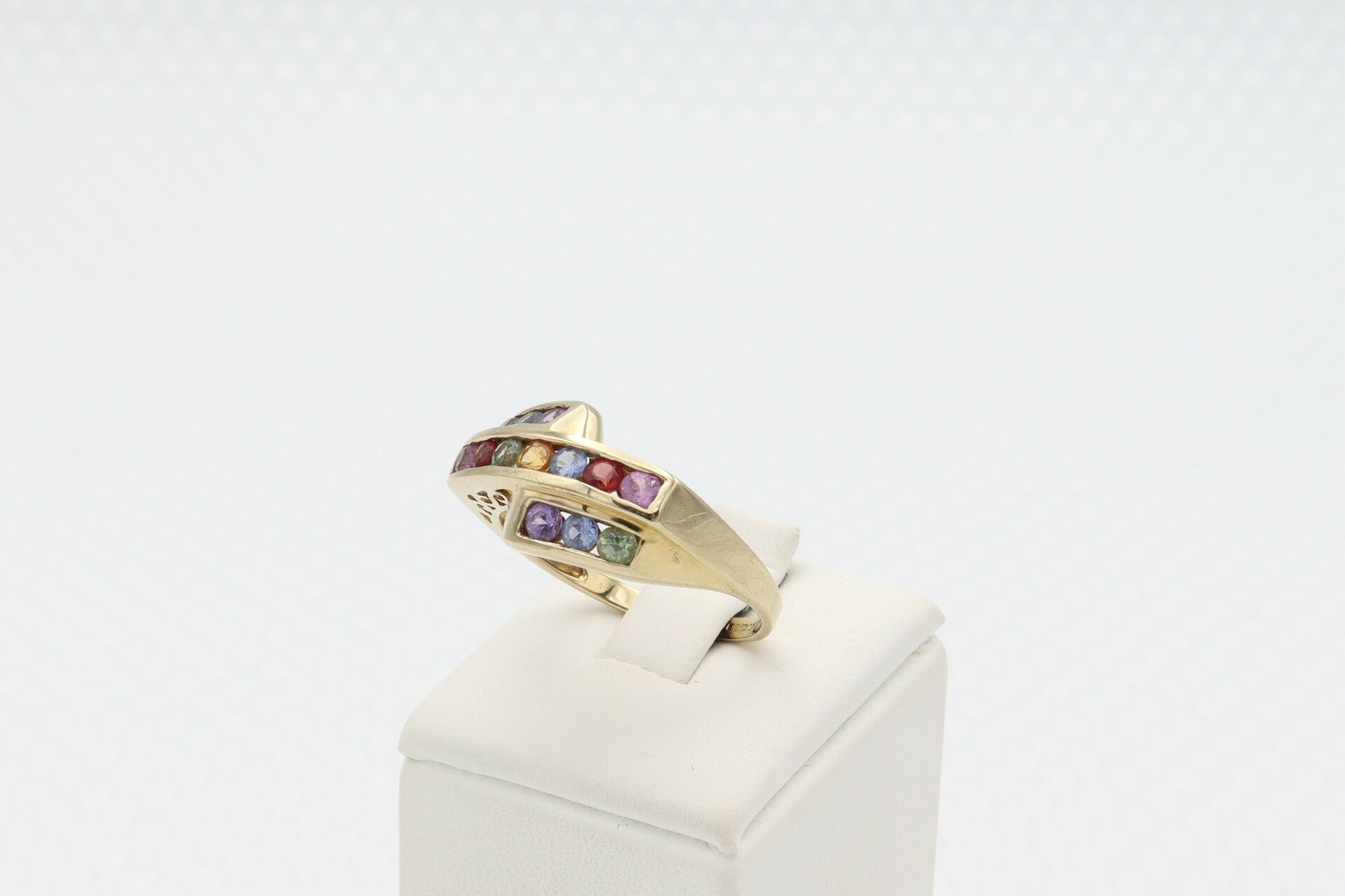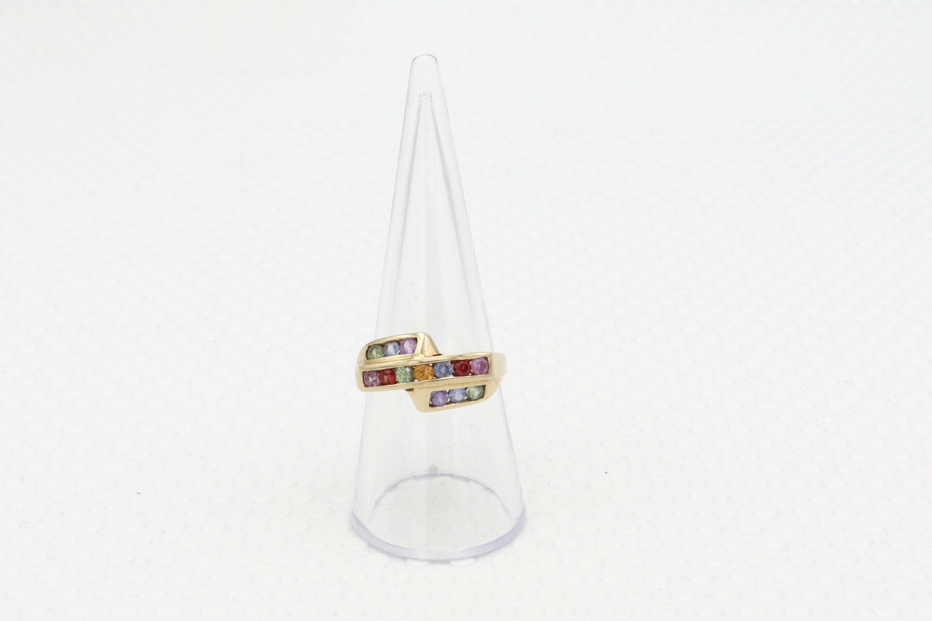 Vintage ring met,roze saffier, granaat, groene amethist, citrien, amethist. Maat: 18.25. Nr: 2020/637.