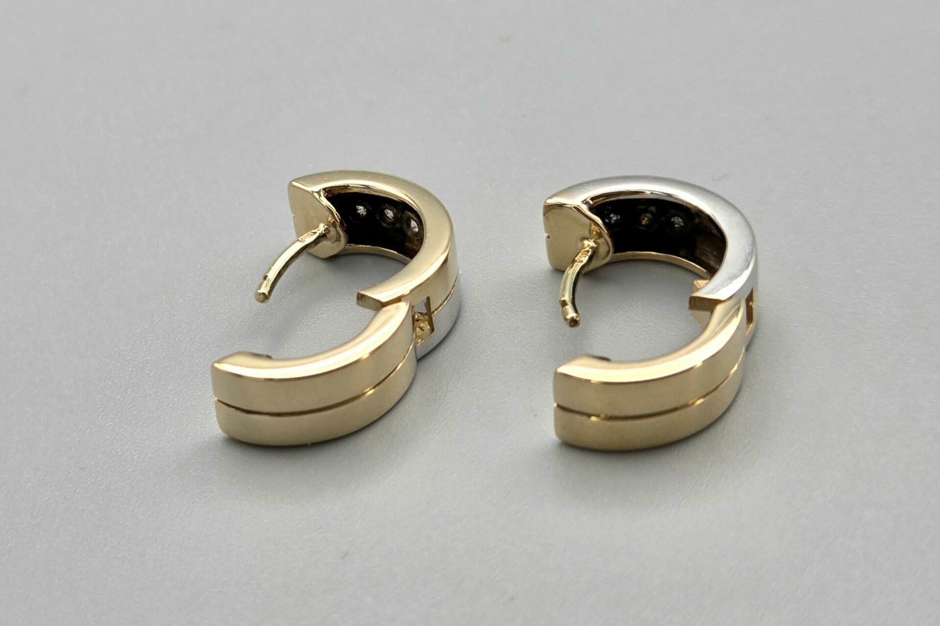 Deze sparkling bi-color klapcreolen zijn schitterend! Ze zijn gemaakt van 14 karaat goud en zijn gezet met zirkonia's. Door de verfijnde zetting, zijn dit een paar chique en tijdloze oorbellen.