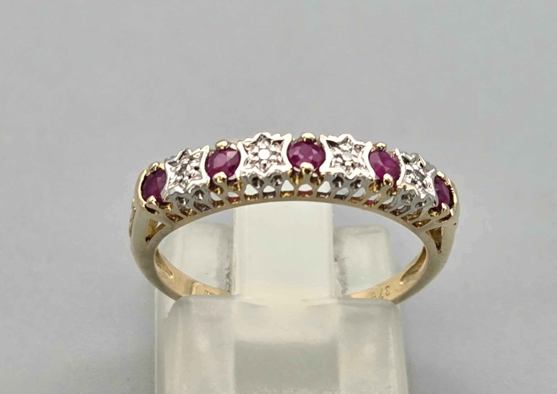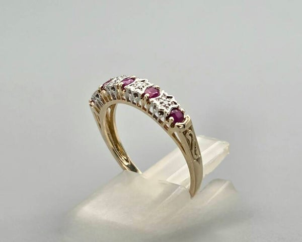 Een mooie vintage aanschuifring die van je vinger spat! Deze vintage ring is gemaakt van 9 karaat en is gezet met edelsteen robijnen en diamanten. De diamanten hebben een gewicht van 0.04 ct. Wie gaat deze vintage eyecatcher dragen.