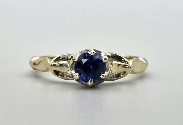 De licht blauwe kleur van deze gouden ring past overal bij. Juist dat is zo leuk aan sieraden met apatiet. Deze gouden ring is gemaakt van 18 karaat goud en heeft die mooie bewerking die zo kenmerkend is aan vintage ringen.