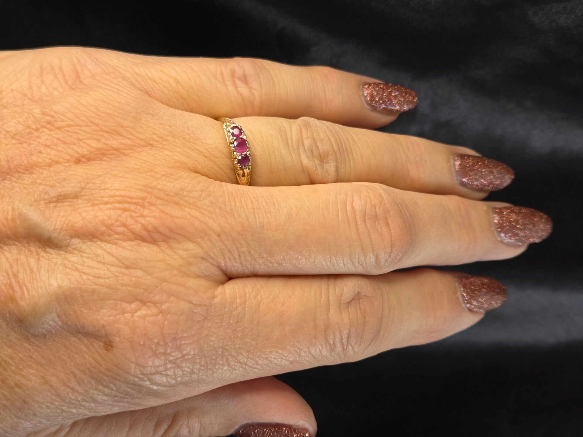 Deze vintage ring is een echte statement ring. Hij is gemaakt van 9 karaat, met in het middelpunt prachtige mooie edelstenen robijn die alle aandacht trekt.