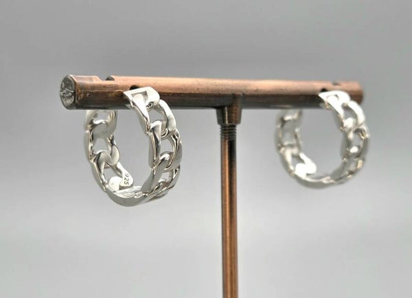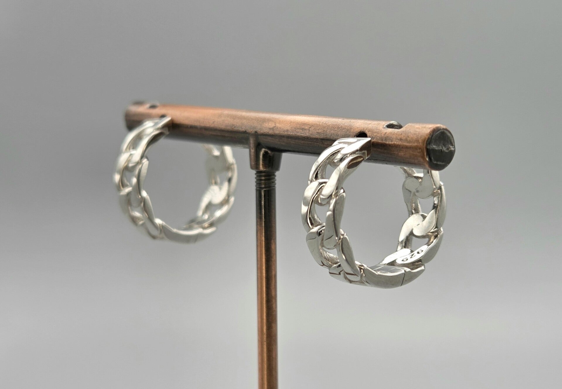 Zilveren gladde gourmetschakel creolen. 2025/749.