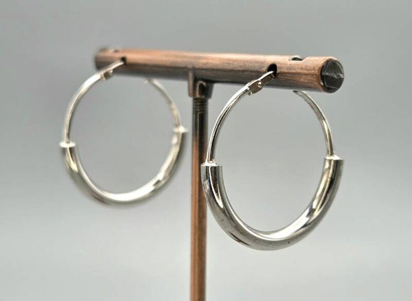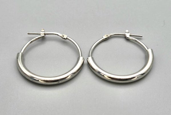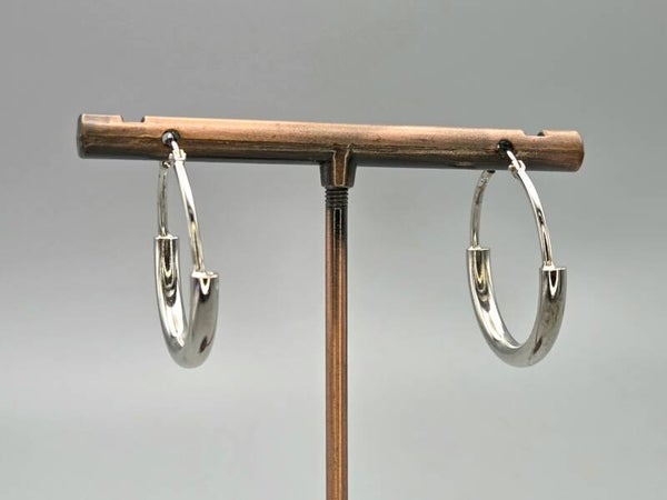 Zilveren gladde creolen ronde buis gerhodineerd. 2025/73.