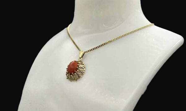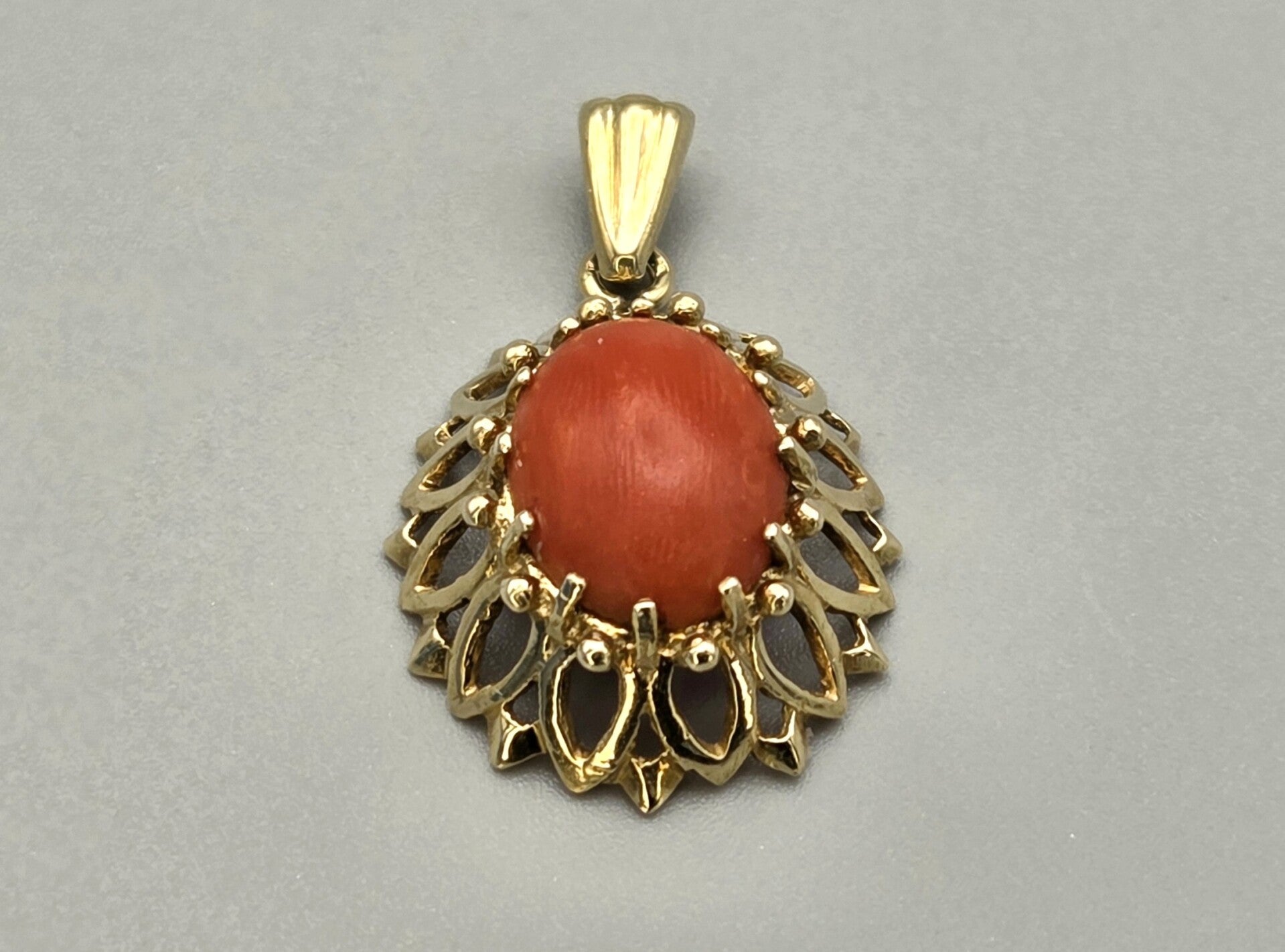 Vintage gouden hanger met bloedkoraal. 2025/774.