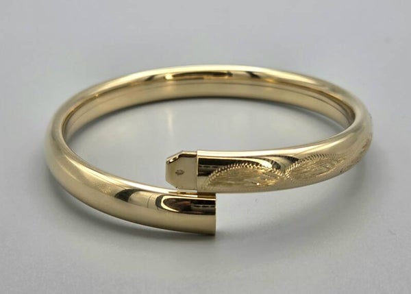 Gouden bewerkte slavenarmband met dopsluiting. 2025/782.