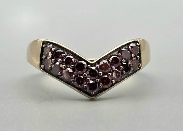 Deze vintage ring is een echte statement ring. Hij is gemaakt van 9 karaat, met in het middelpunt prachtige mooie edelstenen robijn die alle aandacht trekt.