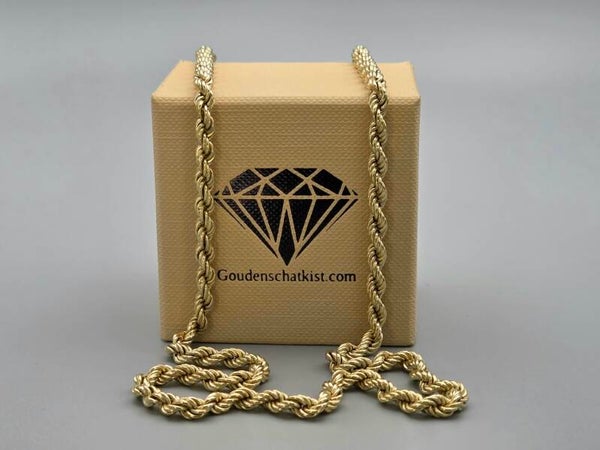 Een koord collier die soepel is en daardoor prachtig op de hals draagt? Dat is deze rope ketting. Deze gouden dames ketting is gemaakt van 14 karaat geelgoud en 70 cm lang.