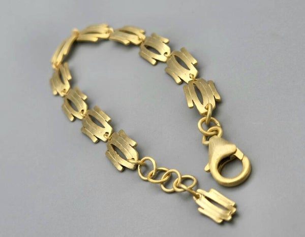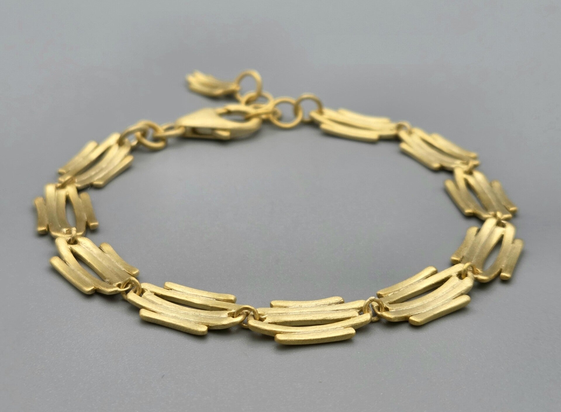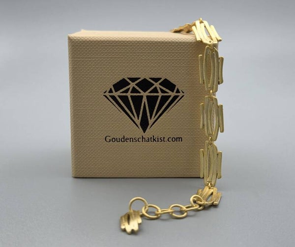 Sieraden van vermeil zijn betaalbaar. Bij vermeil zit er een laagje vermeil over sterling zilver. Doordat vermeil op zilver een prachtig materiaal voor sieraden is, heeft deze desing schakelarmband een prachtige luxe uitstraling die elke outfit net dat beetje meer geeft. Een glanzend oppervlak maakt vervolgens dat alles in detail is afgewerkt.