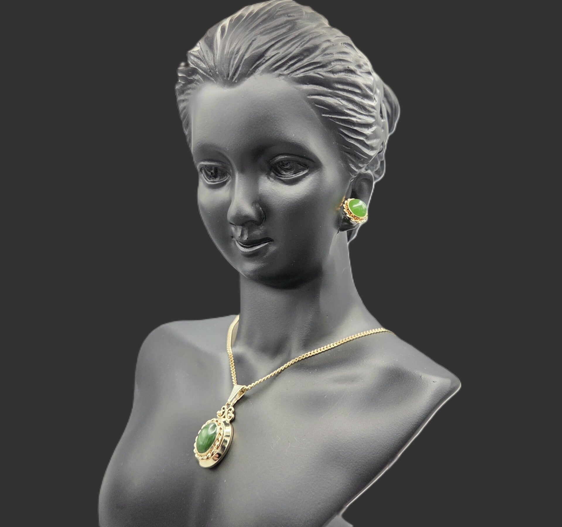 Vintage gouden oorbellen met edelsteen jade. 2026/03.