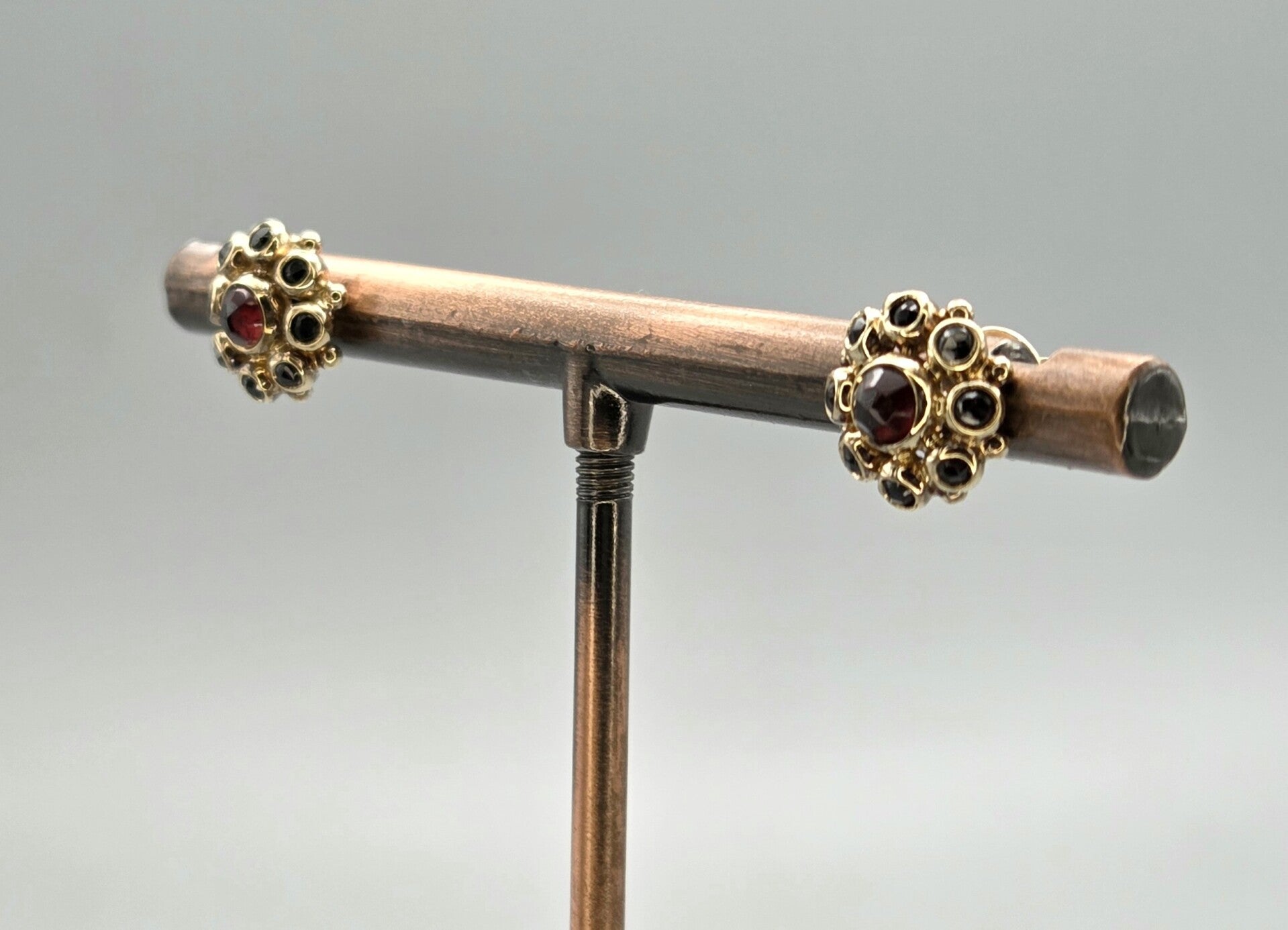 Antieke gouden oorbellen met edelsteen granaat. 2026/11.