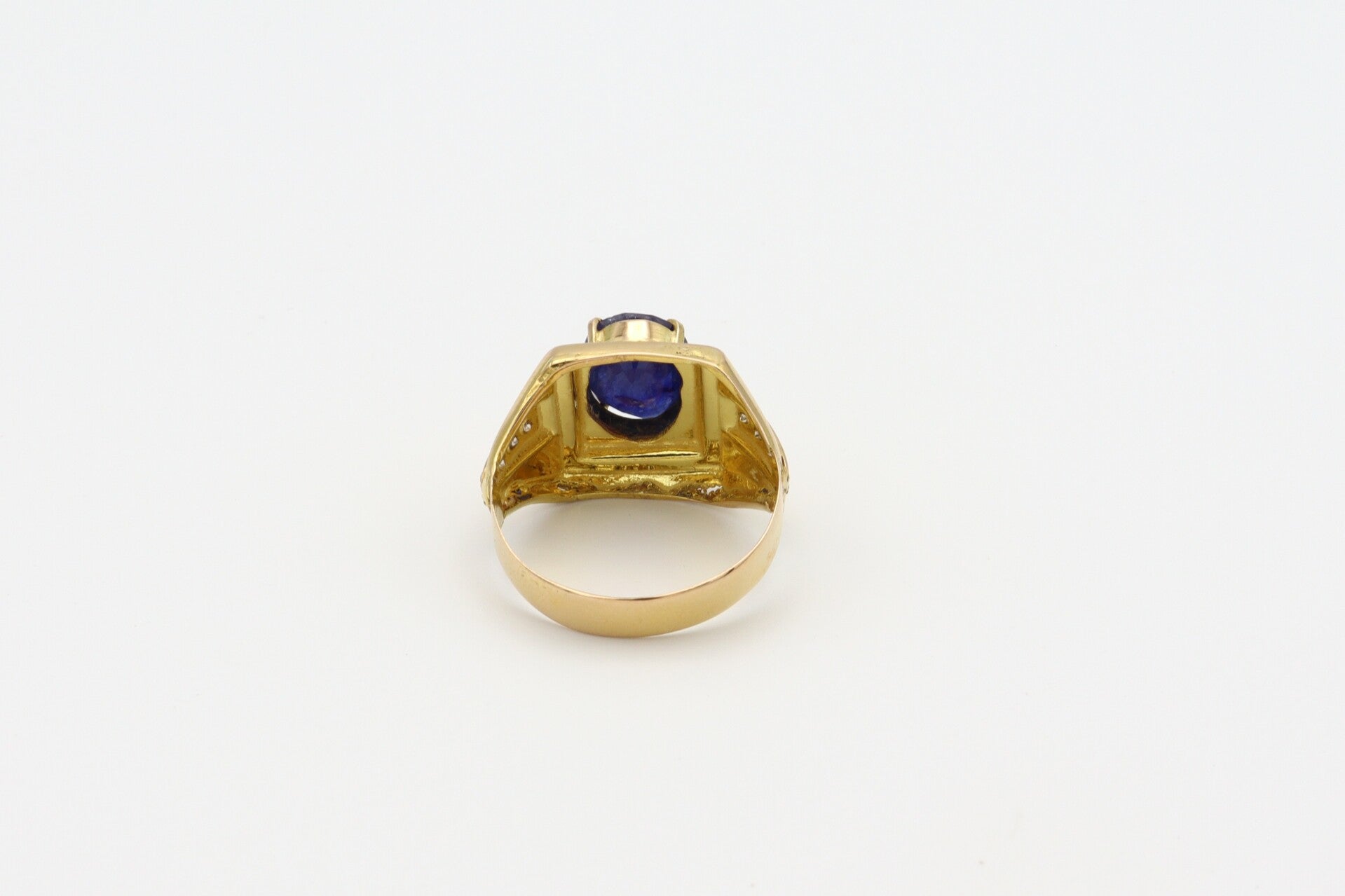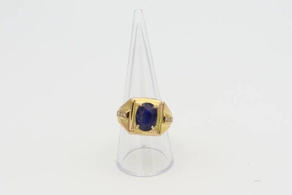 Gouden vintage ring met saffier en diamanten. Maat:19.8. 2020/668.