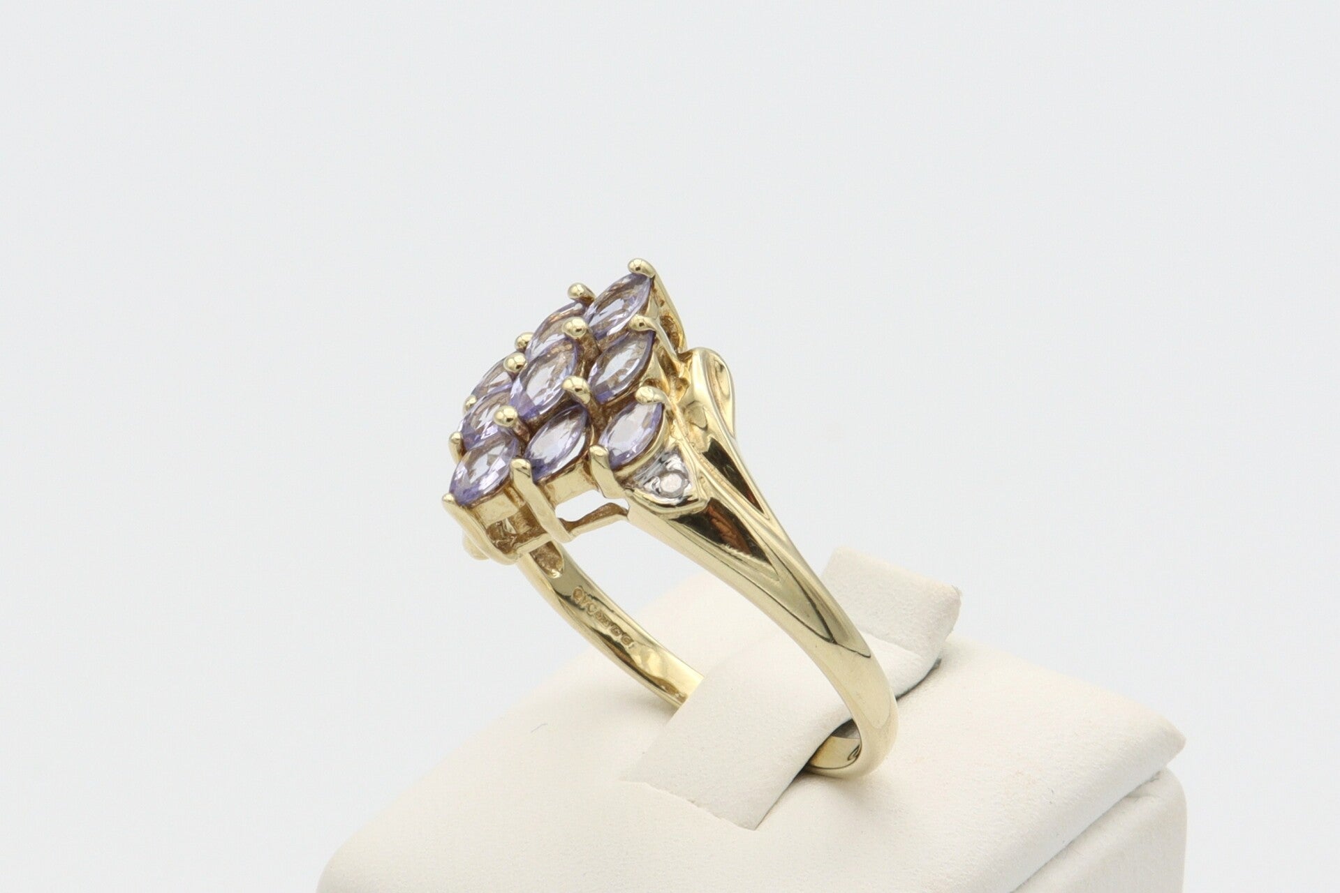 9 Karaat. Vintage ring met loliet en diamanten. Maat: 18.8 Nr: 2020/683.