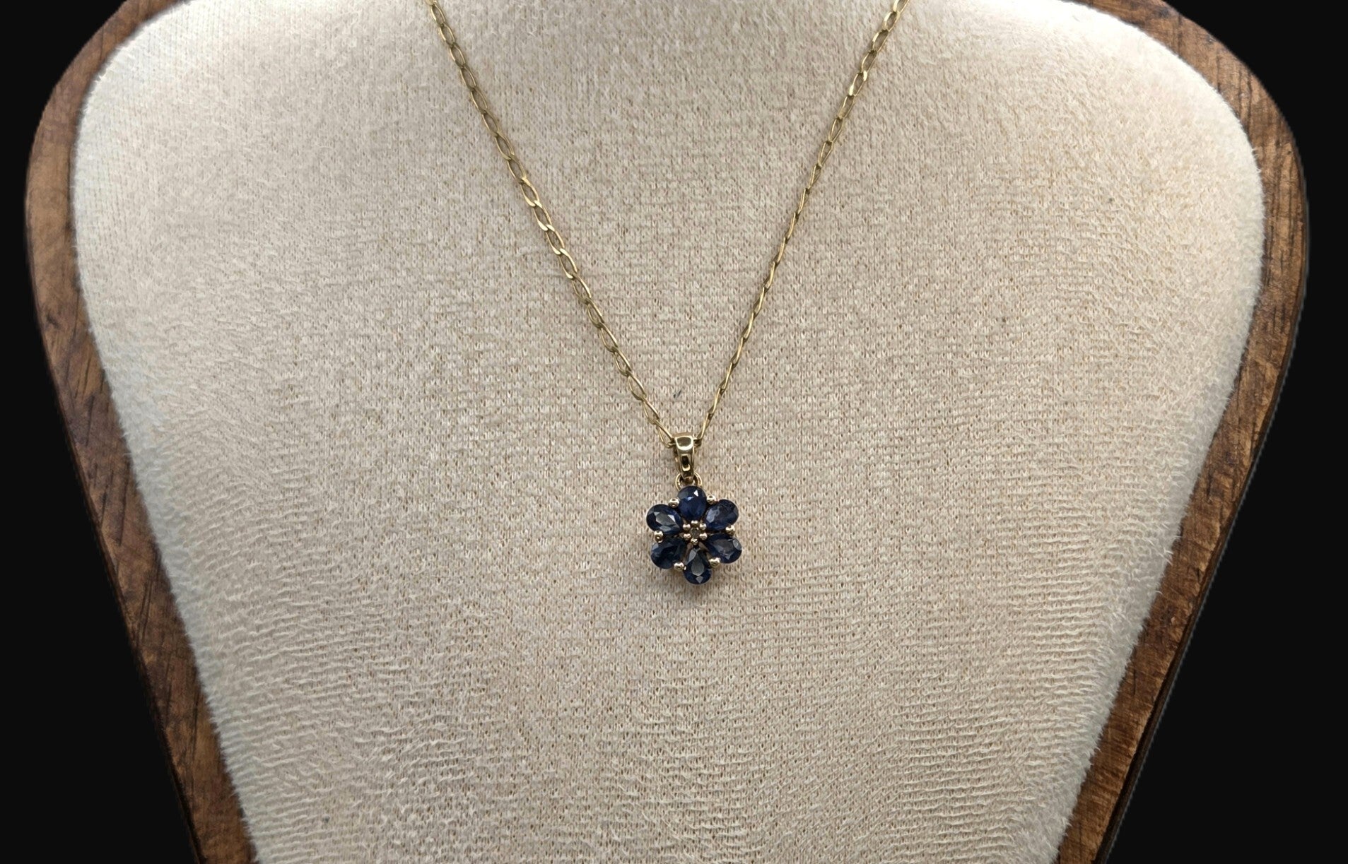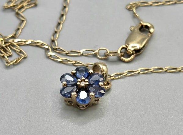 Vintage ketting met hanger met edelstenen saffier. 2026/138.