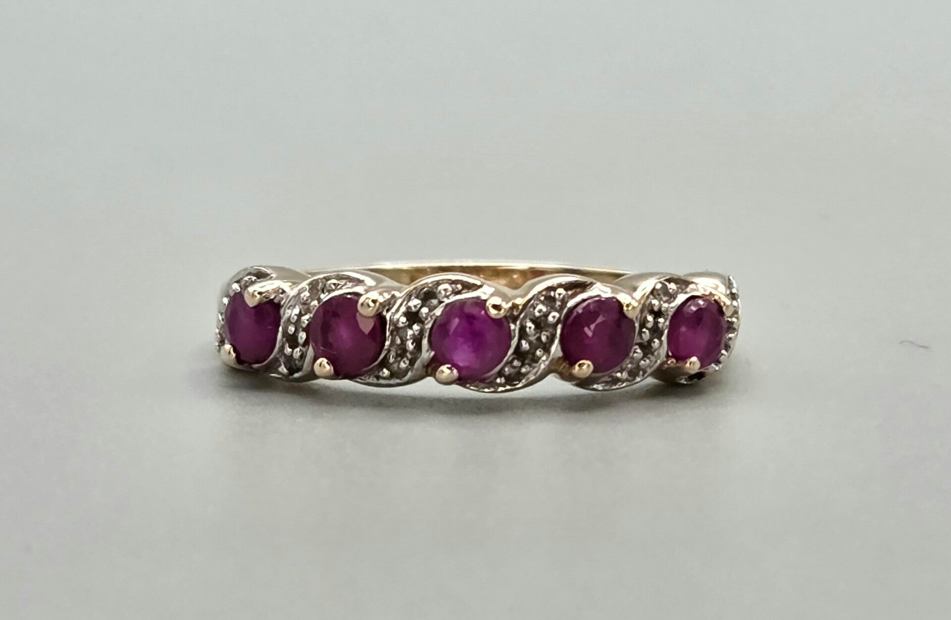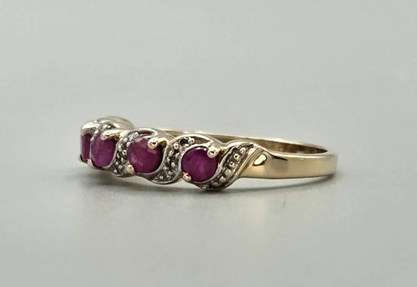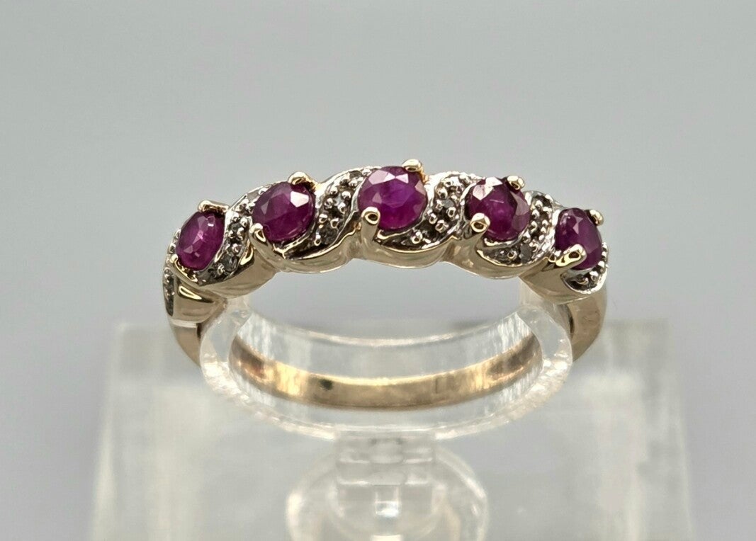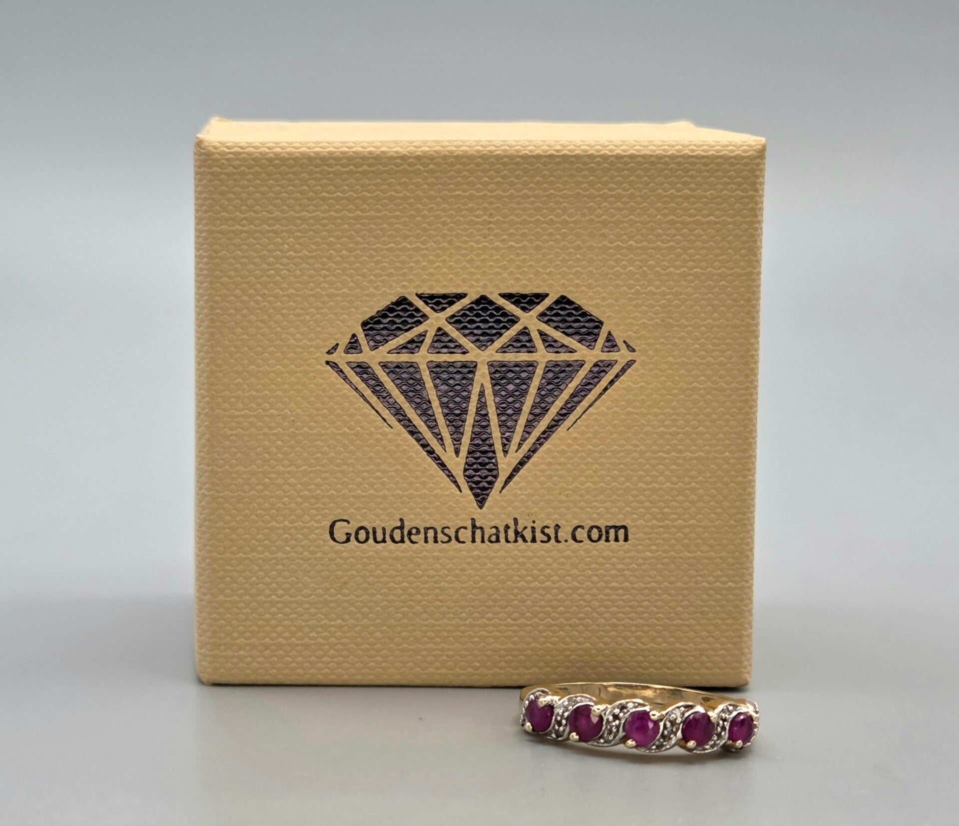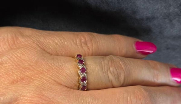 Een mooie vintage aanschuifring die van je vinger spat! Deze vintage ring is gemaakt van 9 karaat en is gezet met edelsteen robijnen en diamanten. De diamanten hebben een gewicht van 0.08 ct. Wie gaat deze vintage eyecatcher dragen.