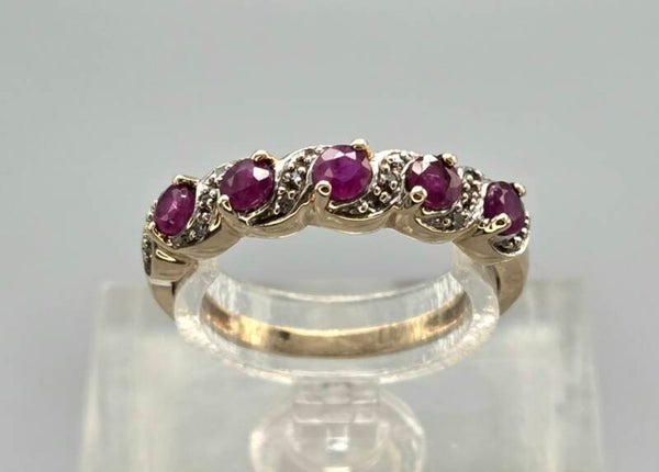 Vintage ring met edelsteen robijn en diamant. 2026/139