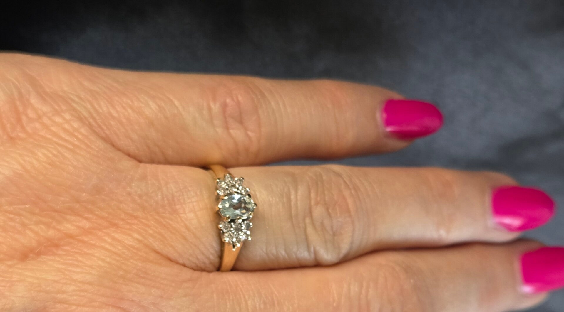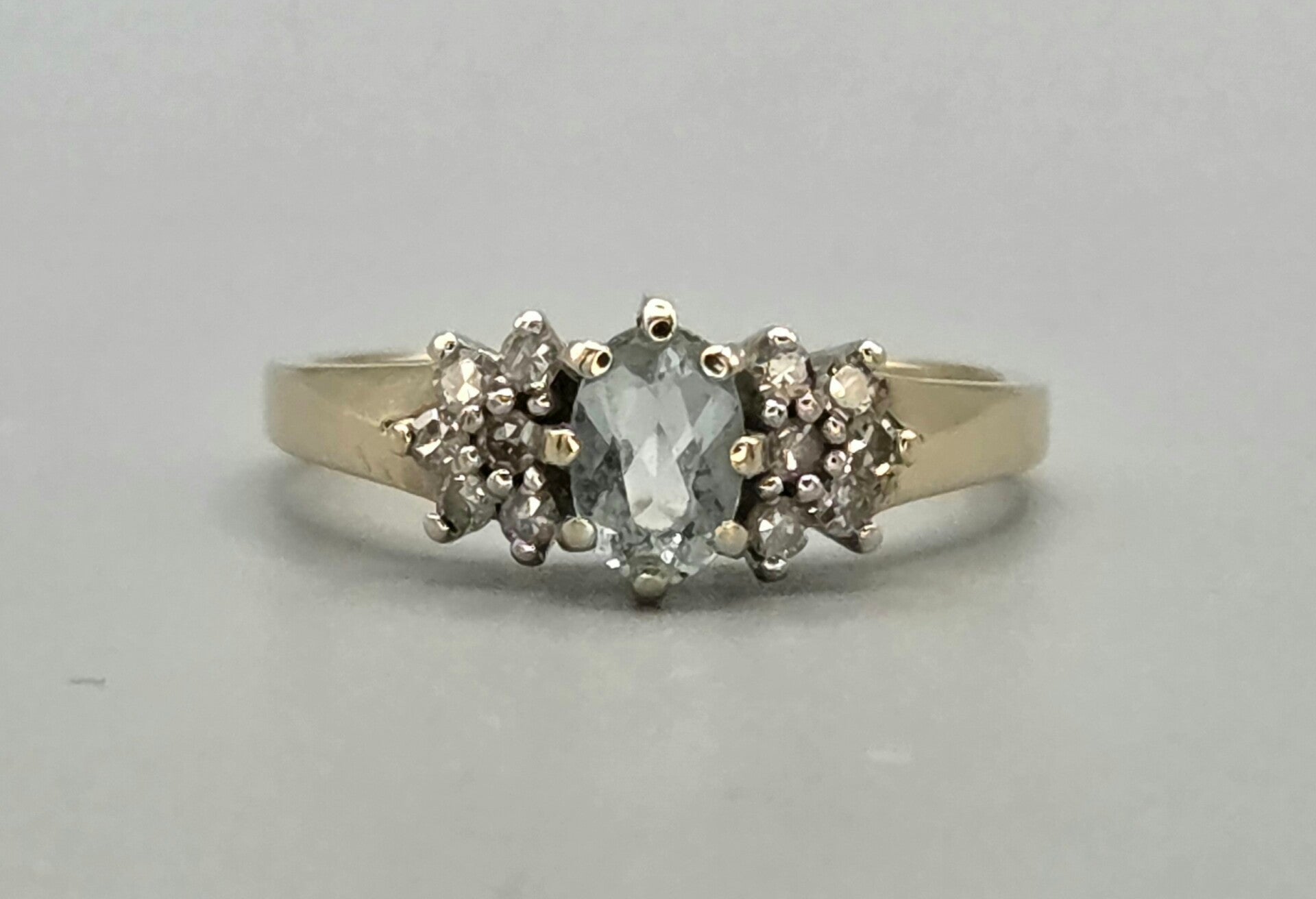 Vintage ring met edelsteen aquamarijn en diamant. 2026/141.