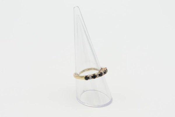 9 Karaat. Vintage ring met saffier en diamanten. Maat: 18.75. Nr: 2020/693.
