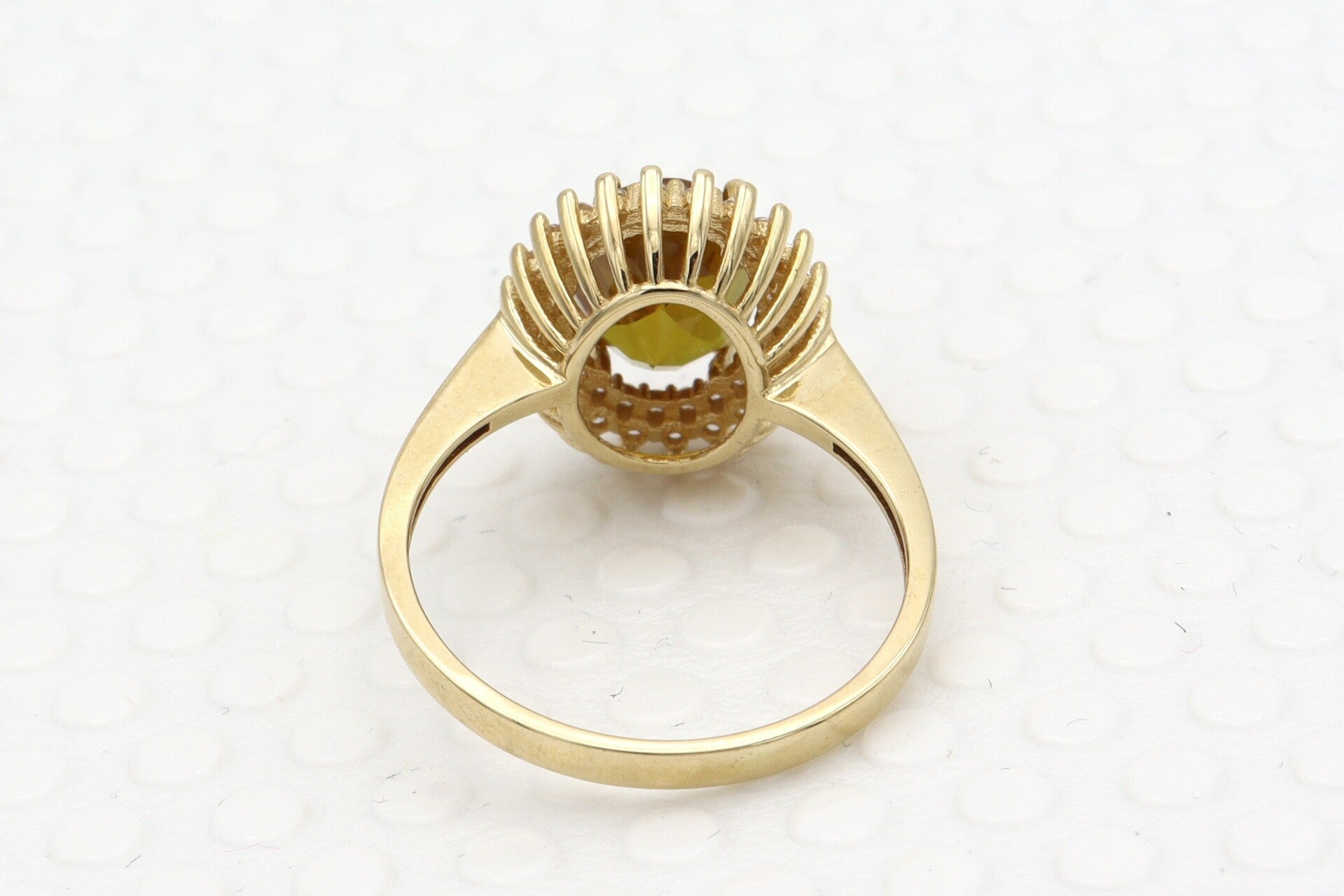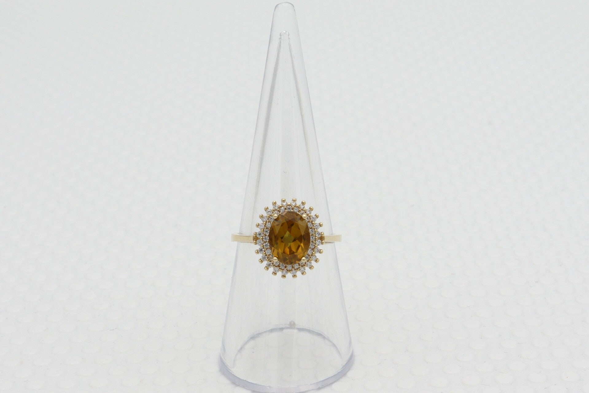 14 Karaat. Gouden vintage ring met citrien en diamonds. Maat:17.5. Nr: 2020/698.