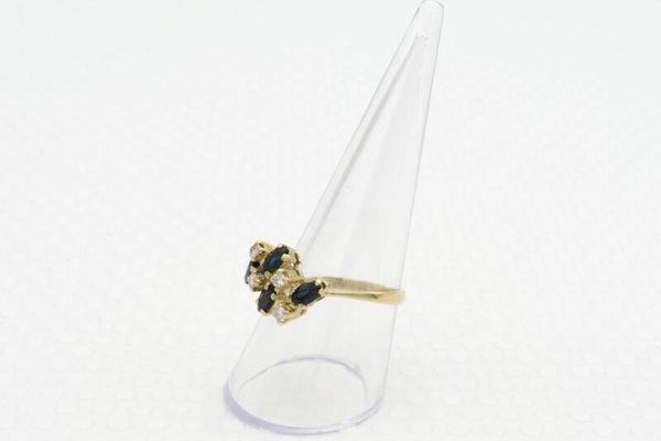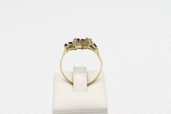 14 Karaat. Gouden vintage ring met saffier en diamanten Ca: 0.16 ct). Maat: 19.3. Nr: 2020/704