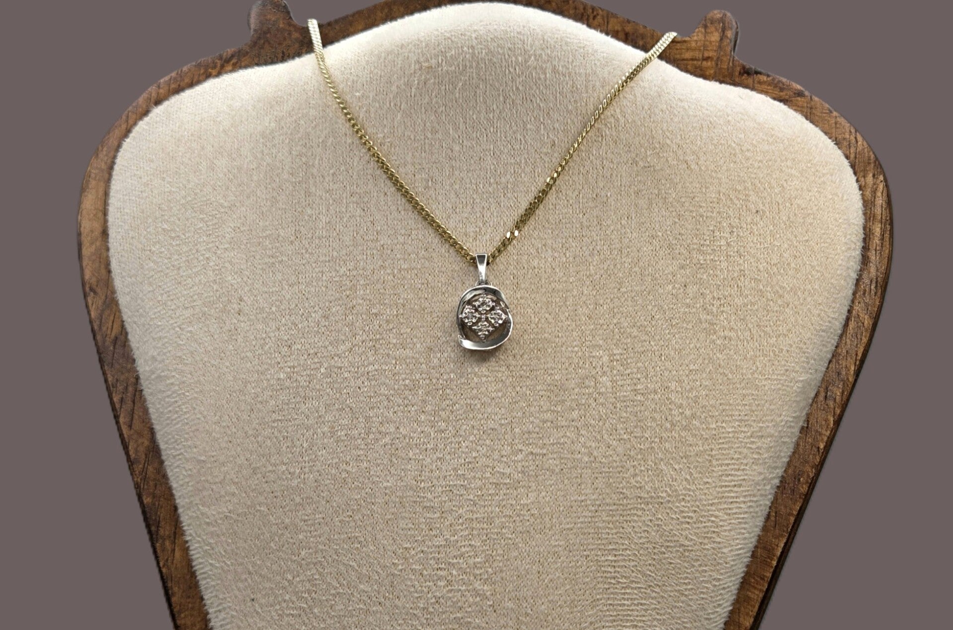 Vintage wit gouden hanger met diamanten. Ca: 0.04ct. 2026/186.