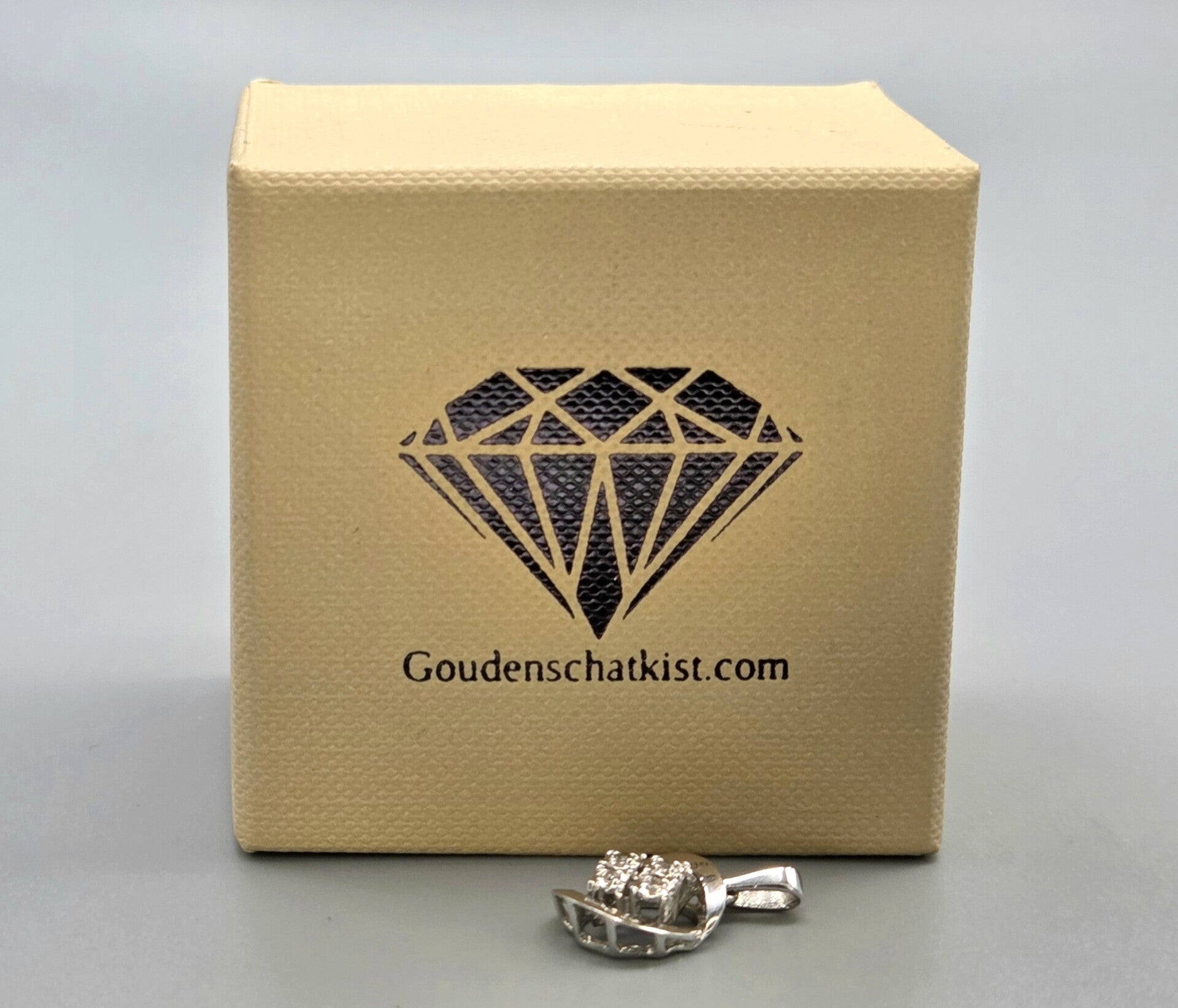 Wat een prachtig vormgegeven sieraad. Door zijn ronde vorm en de combinatie van wit goud is dit een echte blikvanger.