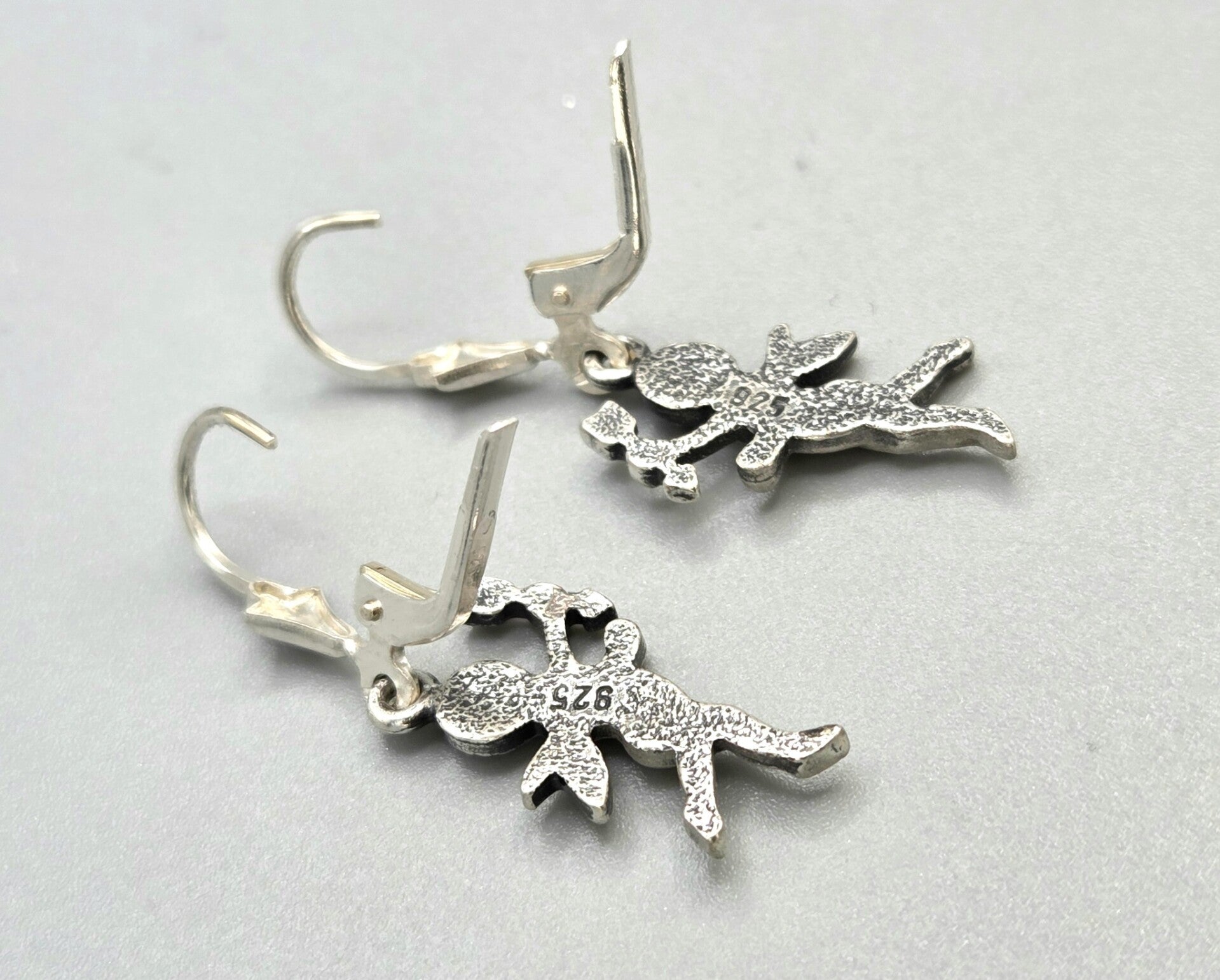 Zilveren Art Nouveau engelen oorbellen gezandstraald. 2026/192